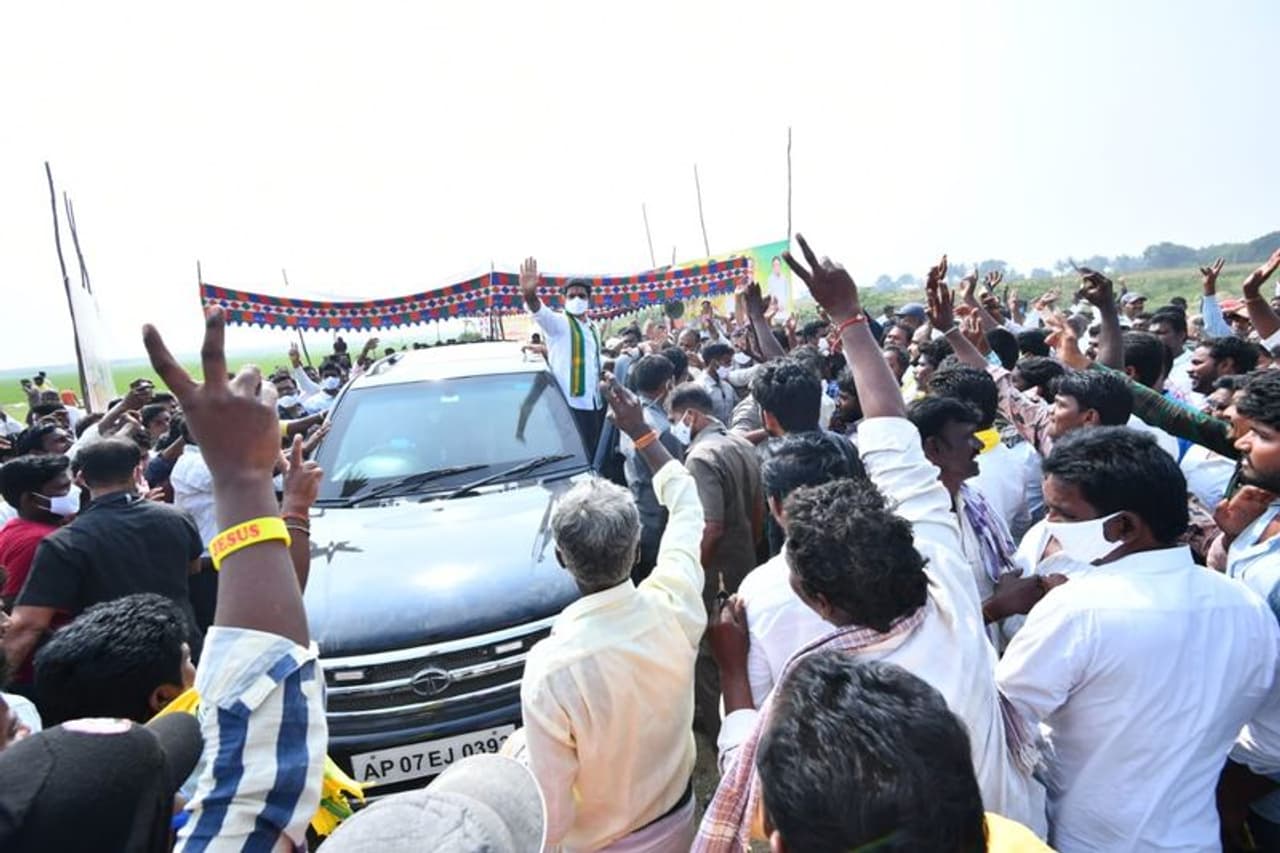 ''జగన్ రెడ్డి గాల్లో ఉంటాడు, వ్యవసాయ శాఖ మంత్రి రికార్డింగ్ డ్యాన్స్ లో బిజీగా ఉన్నాడు. రైతులను గాలికొదిలేసారు. జగన్ రెడ్డిది దరిద్ర పాదం. ఆయన వచ్చిన రోజు నుండి ఒక్క పండుగ లేదు. ఆయన లెగ్ ప్రభావంతో అకాల వర్షాలు, వరదలు, తుఫాన్లు వలన రైతులు తీవ్రంగా నష్టపోయారు. జగన్ రెడ్డి దరిద్ర పాదం వల్ల గత 30 ఏళ్లలో ఎప్పుడూ జరగని నష్టం రైతుకి జరిగింది. జగన్ రెడ్డి దరిద్ర పాదం రాష్ట్రంలో పెట్టిన తరువాత ఒక్క కరోనా తప్ప రాష్ట్రానికి వచ్చింది ఏమి లేదు'' అన్నారు లోకేష్.