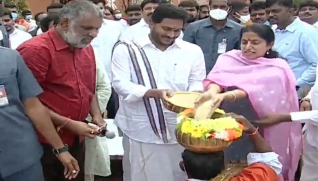 ఆంధ్రప్రదేశ్ ముఖ్యమంత్రి వైఎస్ జగన్ మోహన్రెడ్డి (YS Jagan) నివాసంలో సంక్రాంతి వేడుకలను ఘనంగా నిర్వహించారు. తాడేపల్లిలోని తన నివాసంలోని జరిగిన వేడుకల్లో సీఎం జగన్ దంపతులు పాల్గొన్నారు. సంప్రదాయ పంచెకట్టులో సీఎం జగన్ ఈ వేడుకల్లో కనిపించారు.