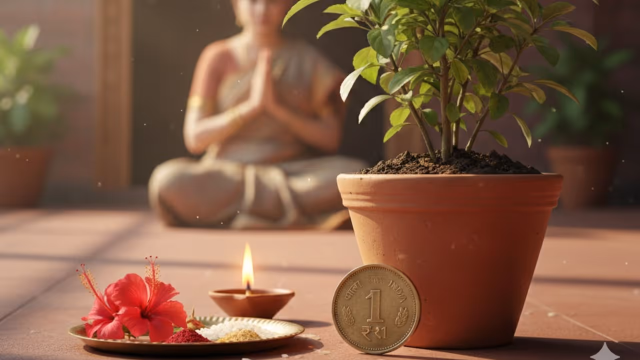 తులసి మొక్క కింద ఒక రూపాయి నాణెం పెట్టడం చాలా శుభంగా భావిస్తారు. దీనివల్ల.. ఇంట్లో ధనాభివృద్ధి పెరుగుతుంది, ఖర్చులపై నియంత్రణ వస్తుంది, వాస్తు లోపాలు తగ్గుతాయి, ఆదాయ ప్రవాహం మెరుగవుతుంది, ఇంటి వాతావరణం సానుకూలంగా మారుతుంది. కొంతమంది రాగి లేదా వెండి నాణెం కూడా ఉపయోగిస్తారు. మట్టిలో నాణెం ఉంచడం వల్ల శక్తి సమతుల్యత ఏర్పడుతుందని నమ్మకం.