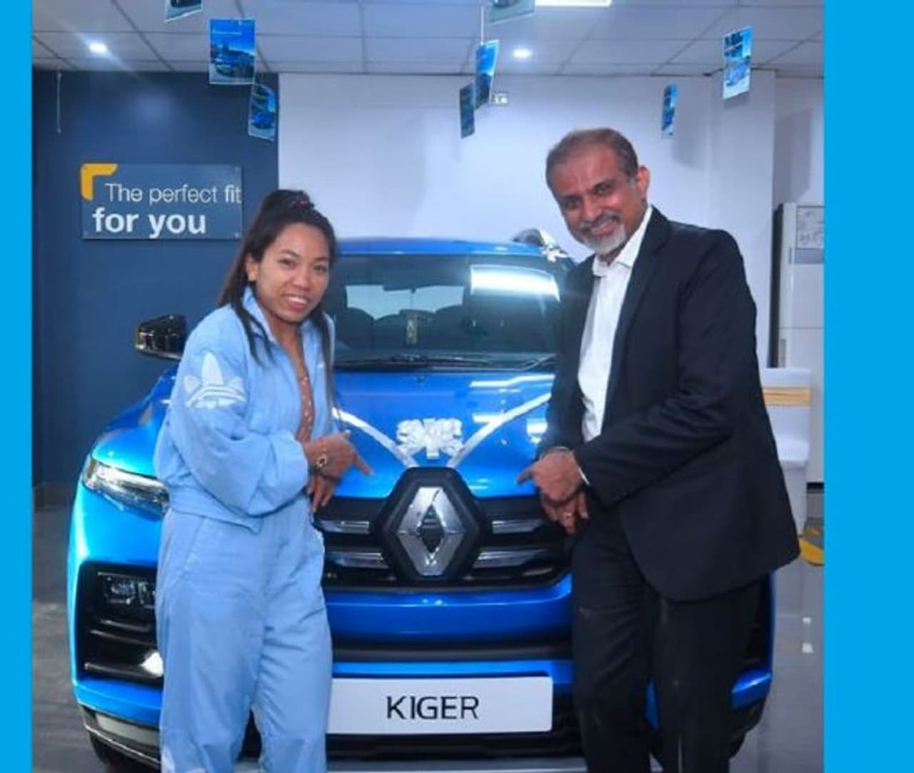 టోక్యో ఒలింపిక్స్ 2020 రజత పతక విజేత సాయిఖోమ్ మీరాబాయ్ చానుకి రెనాల్ట్ సంస్థ (రెనో ఇండియా) కొత్త కిగర్ ఎస్యూవీని బహుమతిగా ఇచ్చింది. రెనాల్ట్ సంస్థ ఇండియాలో అడుగుపెట్టి 10వ సంవత్సరాలు కావొస్తుంది.