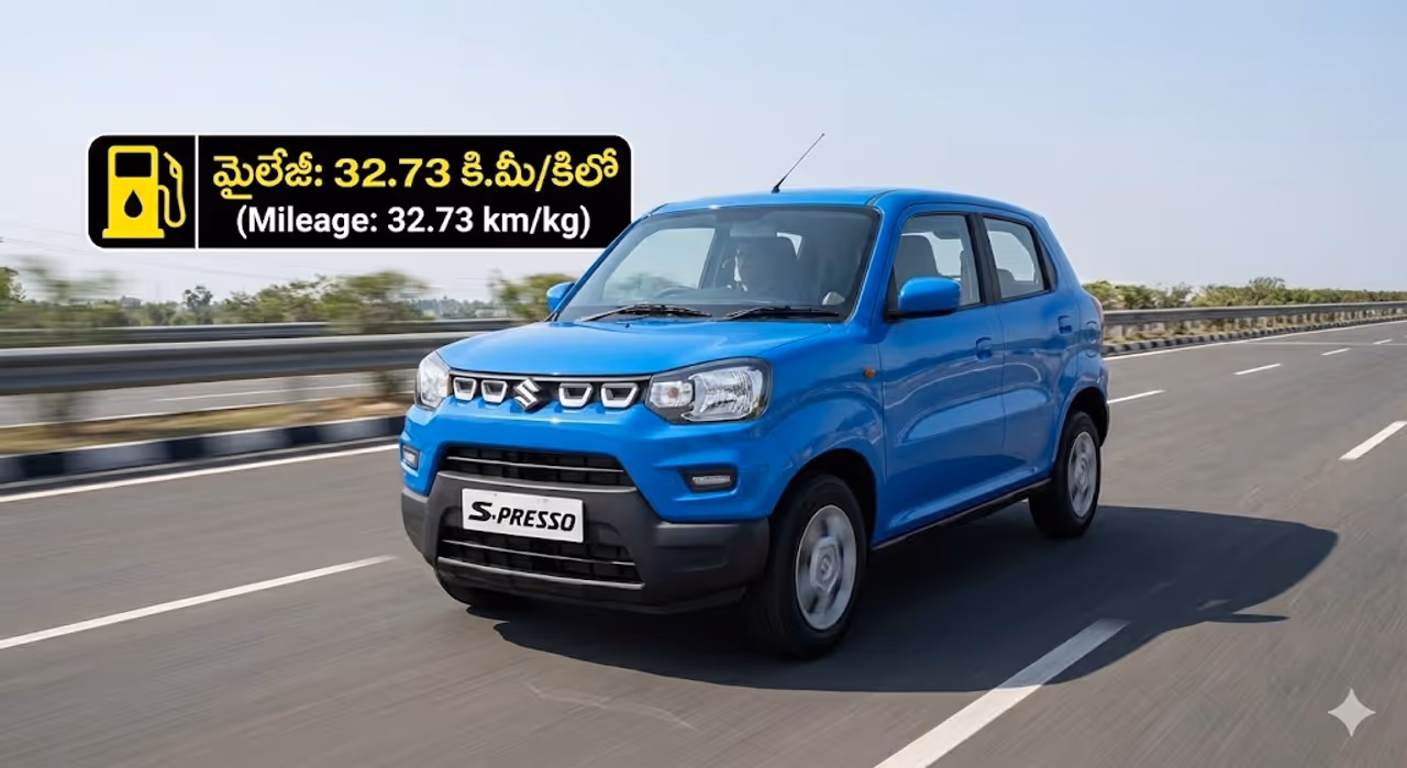 మారుతి సుజుకి ఎస్-ప్రెస్సోకు ఉన్న అతిపెద్ద బలం దాని మైలేజీ. ARAI ధృవీకరించిన గణాంకాల ప్రకారం, పెట్రోల్ వేరియంట్లు లీటరుకు 24.76 కి.మీ నుండి 25.3 కి.మీ వరకు మైలేజీని ఇస్తాయి. కార్లలో ఇది చాలా అద్భుతమైన మైలేజీ. ఇక సీఎన్జీ వేరియంట్ అయితే ఏకంగా కిలోకు 32.73 కి.మీ మైలేజీని అందిస్తుంది.