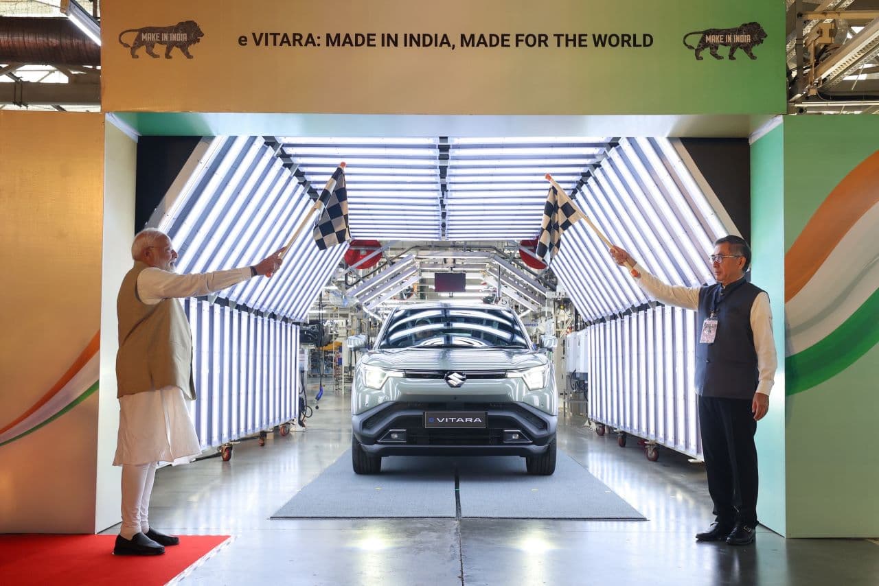 Hon’ble @PMOIndia Shri @narendramodi today commemorated two historic firsts: Start of Production of Maruti Suzuki’s first Battery Electric Vehicle, e VITARA, for sales in over 100 countries, at Suzuki Motor Gujarat Private Limited, a wholly owned subsidiary of #MarutiSuzuki and… pic.twitter.com/BLTYPEhZvB