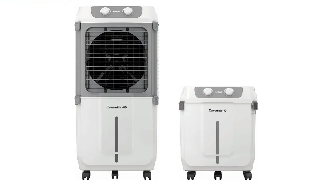 Havells Air Cooler: వేసవి తీవ్రత పెరిగిపోతుండడంతో కూలర్లు, ఏసీలు కొనేవారు అధికంగా ఉన్నారు. 80 లీటర్ల పెద్ద ట్యాంకుతో వచ్చే కన్వర్టిబుల్ డిసర్ట్ ఎయిర్ కూలర్ ఇప్పుడు మార్కెట్లో ఉంది. హావెల్స్ కి చెందిన ఈ భారీ కూలర్ సగం ధరకే వస్తోంది.