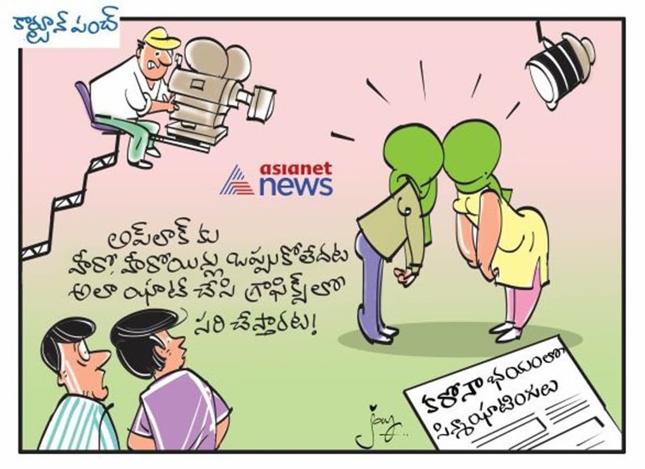 కరోనా భయం... సినిమా షూటింగ్స్ లో లిప్ లాక్ ఇలా... సరదా కార్టూన్