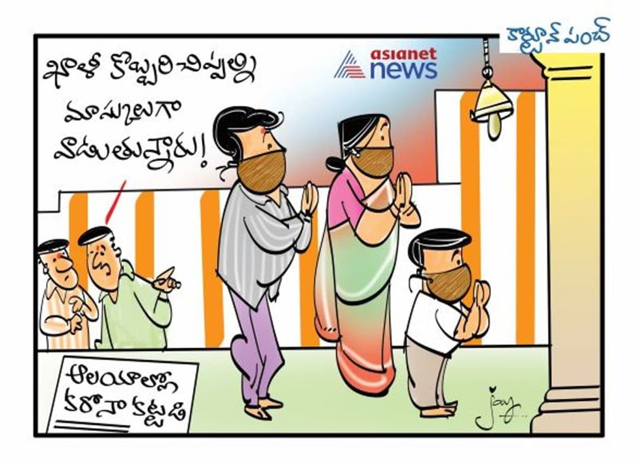 ఆలయాల్లో కరోనా కట్టడిపై... కామెడీ కార్టూన్ పంచ్