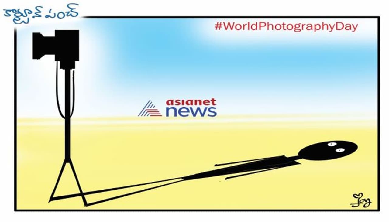 అంతర్జాతీయ ఫోటోగ్రఫీ దినోత్సవం సందర్భంగా ఏషియా నెట్ తెలుగు అందిస్తున్న స్పెషల్ కార్టూన్. ప్రకృతి అందాలనే కాదు అదే ప్రకృతి ప్రకోపాన్ని కళ్లకు కట్టినట్లు చూపిస్తుంటారు. అలాగే ప్రజా సమస్యలను పాలకుల చెంతకు ఒక్కమాటలో చేరుస్తుంటారు. ఇలాంటి అంకితభావం కలిగిన ఫోటోగ్రాఫర్లకు ఏషియా నెట్ తెలుగు తరపున అంతర్జాతీయ ఫోటోగ్రఫీ దినోత్సవ శుభాకాంక్షలు.