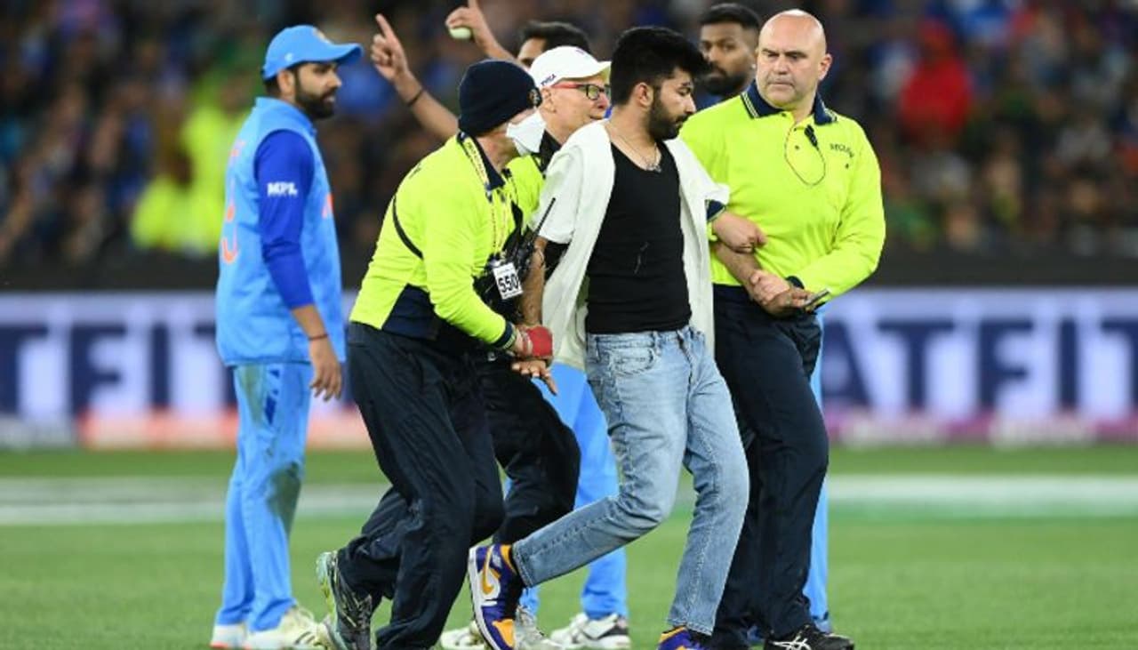 టీ20 వరల్డ్ కప్ 2022 టోర్నీలో ఇండియా- పాకిస్తాన్ మధ్య జరిగిన మ్యాచ్లో ఓ అభిమాని, సెక్యూరిటీ కళ్లు గప్పి క్రీజులోకి దూసుకొచ్చాడు. పాక్ బ్యాటింగ్ చేస్తున్న సమయంలో బౌలింగ్ చేస్తున్న భువీ దగ్గరికి వెళ్లి షేక్ హ్యాండ్ ఇచ్చే ప్రయత్నం చేశాడు ఆ అభిమాని...