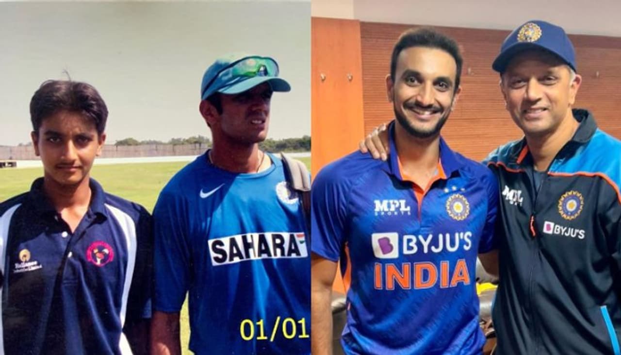 కాగా.. తాజాగా అతడు షేర్ చేసిన ఓ ఫోటో ఇప్పుడు సామాజిక మాధ్యమాల్లో వైరల్ గా మారుతున్నది. ఇన్స్టాగ్రామ్ వేదికగా హర్షల్ రెండు ఫోటోలను షేర్ చేశాడు. ఆ రెండూ ప్రస్తుత టీమిండియా హెడ్ కోచ్ రాహుల్ ద్రావిడ్ తో ఉన్నవే..