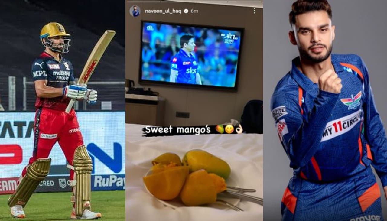 మంగళవారం ముంబై - బెంగళూరు మధ్య వాంఖెడే వేదికగా జరిగిన మ్యాచ్ లో కోహ్లీ ఒక్క పరుగుకే నిష్క్రమించిన తర్వాత నవీన్ ఉల్ హక్ తన ఇన్స్టా స్టోరీస్ లో ముంబై ఇండియన్స్ మ్యాచ్ చూస్తూ మామిడి పండ్లు తింటున్న ఫోటోను షేర్ చేసి ‘స్వీట్ మ్యాంగోస్’ అని పోస్టు పెట్టాడు.