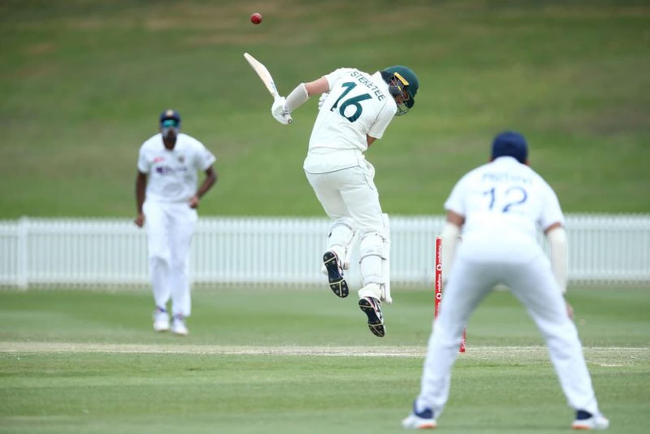 ఓవర్ నైట్ స్కోరు 286/8 వద్ద మూడో రోజు ఆటను కొనసాగించిన ఆస్ట్రేలియా ఏ జట్టు మరో 20 పరుగులు జోడించి స్టెకెకీ వికెట్ కోల్పోయింది.