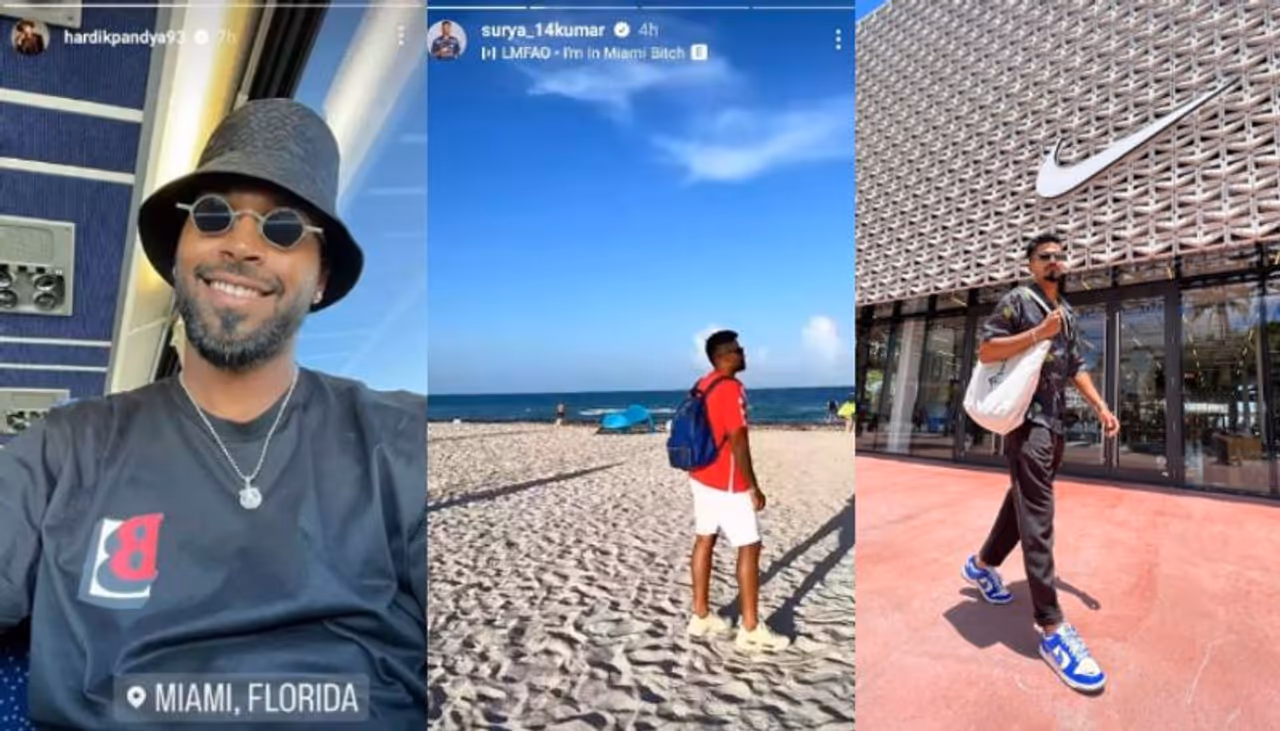 హార్ధిక్ పాండ్యా, సూర్యకుమార్ యాదవ్, కుల్దీప్ యాదవ్, రవి బిష్ణోయ్, అవేశ్ ఖాన్, అర్ష్దీప్ సింగ్ , శ్రేయాస్ అయ్యర్ లు మియామి అందాలను ఆస్వాదిస్తున్నారు. అందుకు సంబంధించిన ఫోటోలను తమ ఇన్స్టాగ్రామ్ ఖాతాలలో షేర్ చేస్తున్నారు.