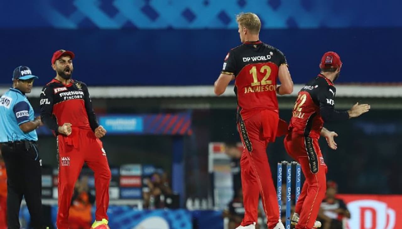అంపైర్ నాటౌట్గా ప్రకటించినా విరాట్ కోహ్లీ రివ్యూ తీసుకోవడంతో ఫలితం రాయల్ ఛాలెంజర్స్ బెంగళూరుకి అనుకూలంగా వచ్చింది. ఆ తర్వాత 18 బంతుల్లో 2 ఫోర్లు, ఓ సిక్సర్తో 21 పరుగులు చేసిన సంజూ శాంసన్ కూడా అవుట్ అయ్యాడు.