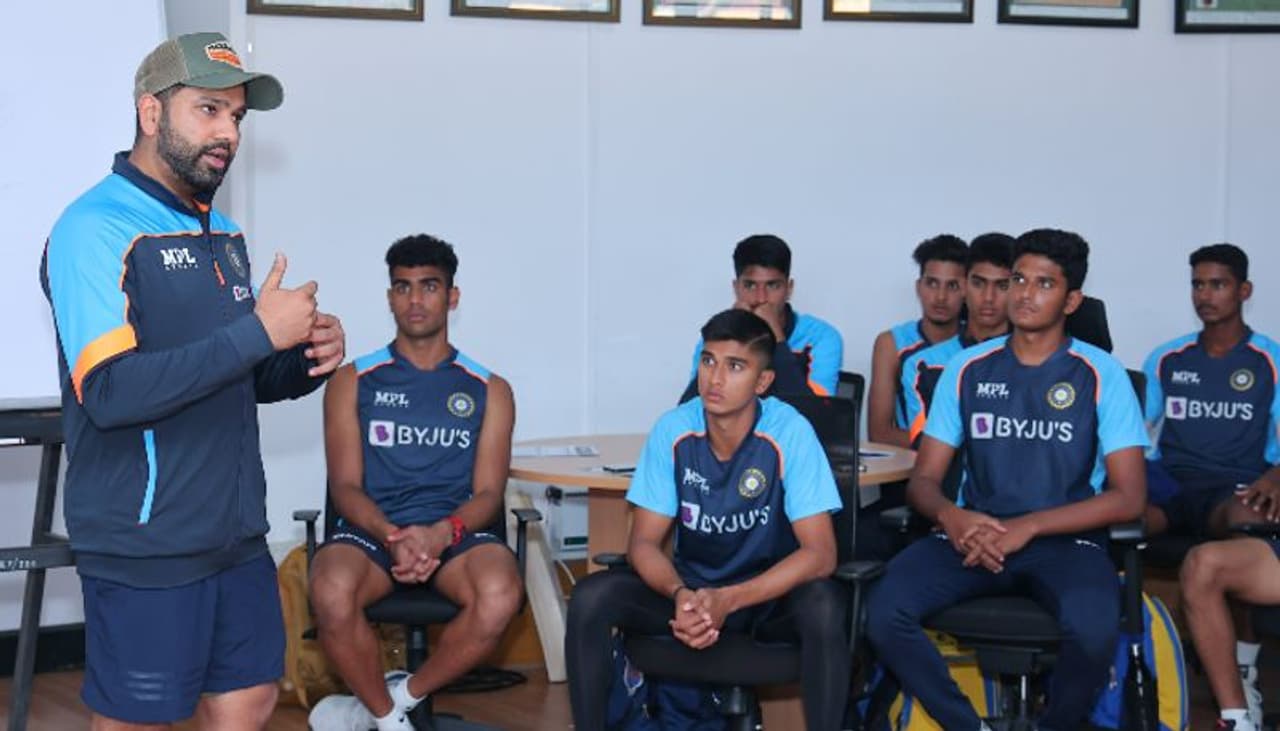 ఈ సందర్భంగా భారత వైట్ బాల్ కెప్టెన్ రోహిత్ శర్మ, అండర్-19 యువ జట్టుకి విలువైన సూచనలు, సలహాలు ఇచ్చాడు. కుర్రాళ్లు అడిగిన ప్రశ్నలకు తన స్టైల్లో సమాధానాలు చెప్పాడు...