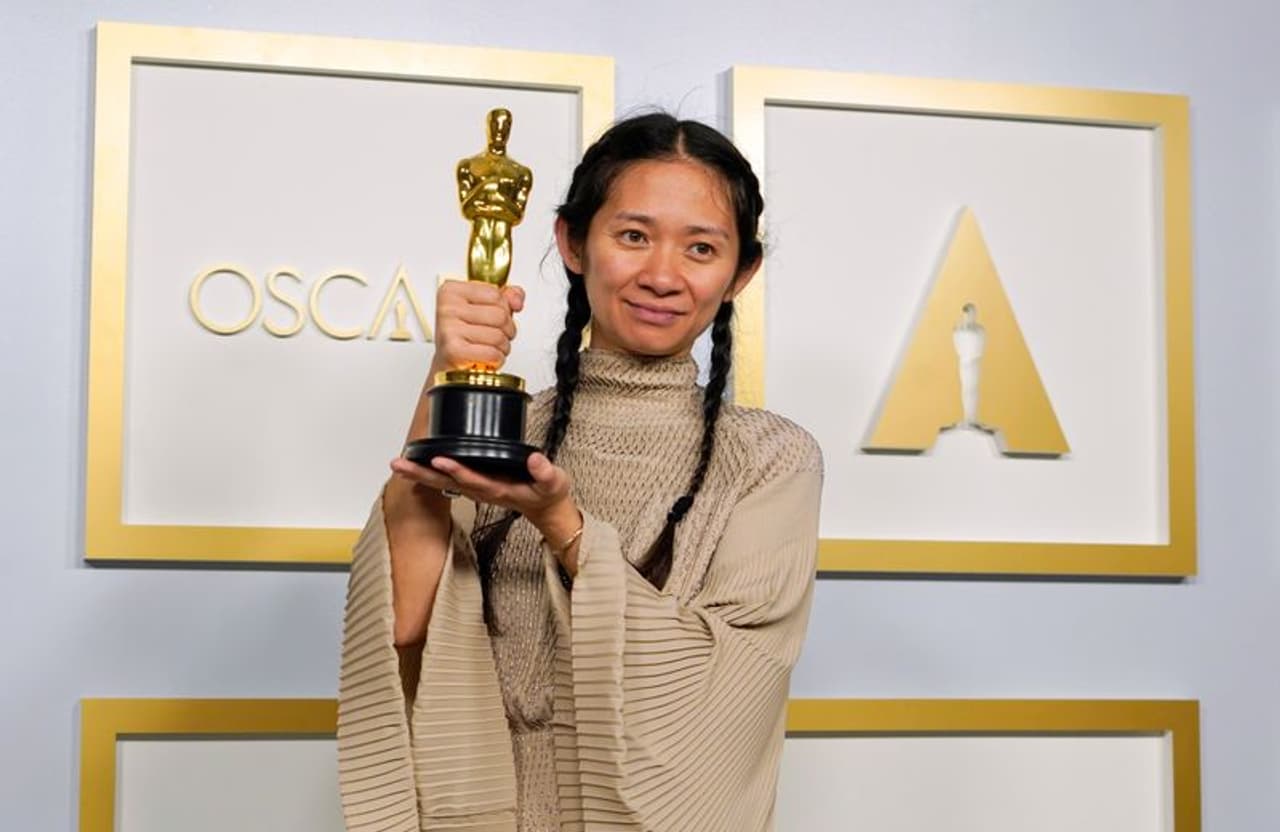 ఉత్తమ దర్శకురాలిగా `నోమడ్లాండ్` చిత్రానికి ఆస్కార్ అందుకున్న క్లోయి జావో.
