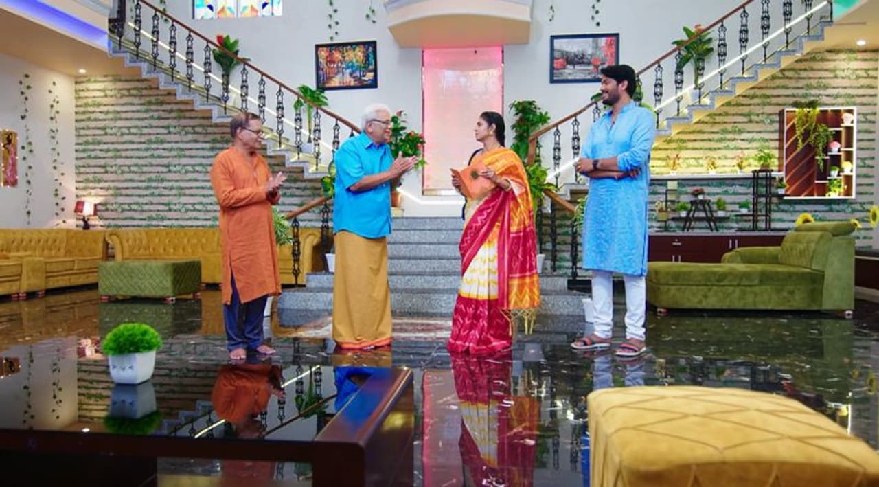 అభి దాన్ని చూసి నీ పేరు ఉందని సంతోషపడుతున్నావు.కింద ఆయన పేరు ఉండడం ఎందుకు అని అడుగుతాడు. దానికి తులసి, ఆయనే కదా బాస్ అని అంటాది. ఆయన కంపెనీకి బాస్.నీకు బాస్ కాదు అని ఆ కార్డ్ నీ చింపేసి, మనం అక్కడికి వెళ్లడం లేదు అని అభి అంటాడు. ఇంతట్లో పరంధామయ్య అభిని కొట్టబోయి నీ తల్లిని అర్థం చేసుకోవడం నీకు ఇంకా జన్మలో రాదు. రేపు అందరం కలిసి భూమి పూజకు వెళ్తున్నాము ఇదే నా మాట అని అంటాడు. అనసూయ కూడా పరంధామయ్యకే సపోర్ట్ చేస్తుంది. అప్పుడు తులసి అభితో నేను ప్రతి ఒక్కరూ మాట వినే తులసిని కాదు.