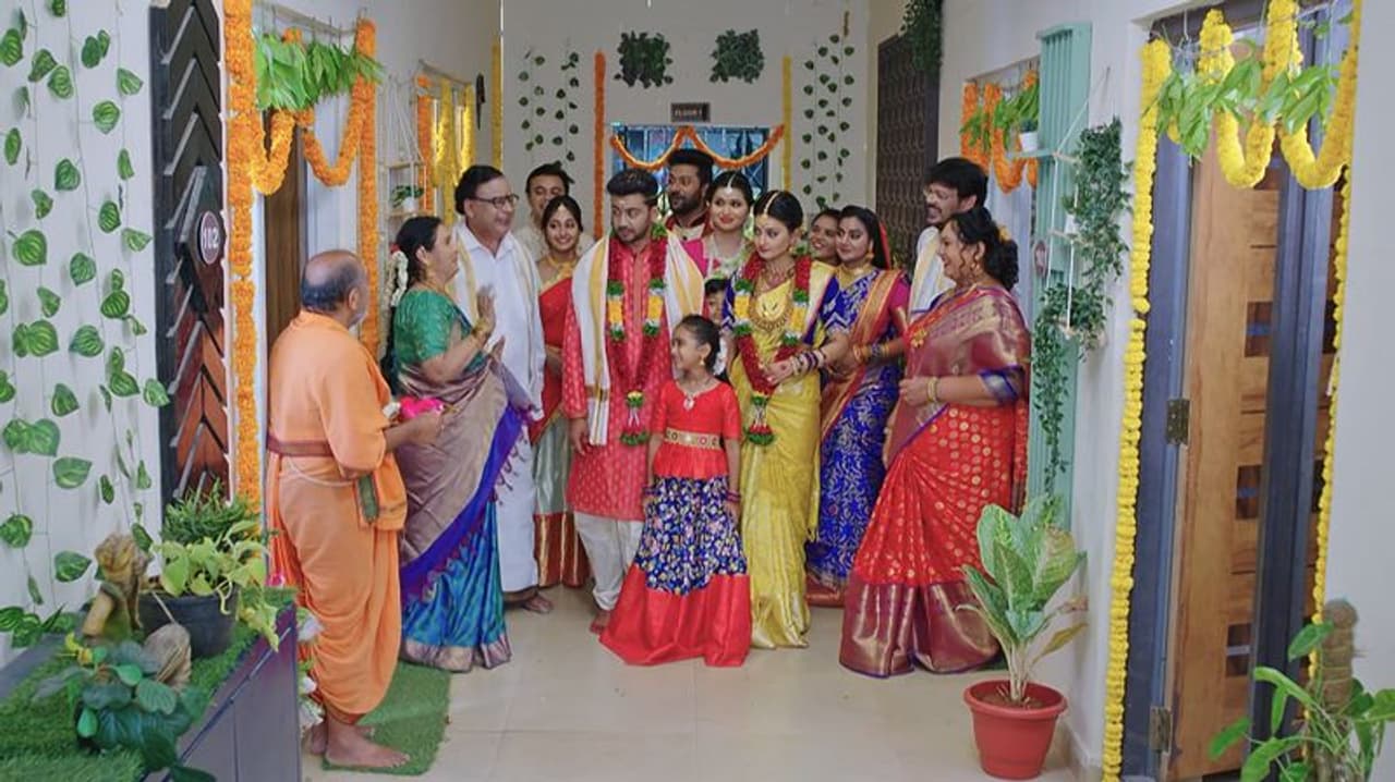 యశోదర్ ఇంట్లో కి గృహ ప్రవేశం కోసం వెళ్తారు కానీ కాంచన ఆపి ఒకరి పేరు ఒకరు చెప్పాలి అంటుంది. దాంతో వేద యశోదర్ ముందు నువ్వు చెప్పు అంటే నువ్వు చెప్పు అనుకుంటారు ఖుషి చెప్పండి నాన్న అని అనడంతో యశోధర్ ముందుగా చెప్తాడు. వేద చాలా గౌరవంగా అందరి పేర్లను చెప్తుంది. ఇక ఖుషితో కలిసి యశోదర్ ఇంట్లోకి గృహప్రవేశం చేస్తారు.