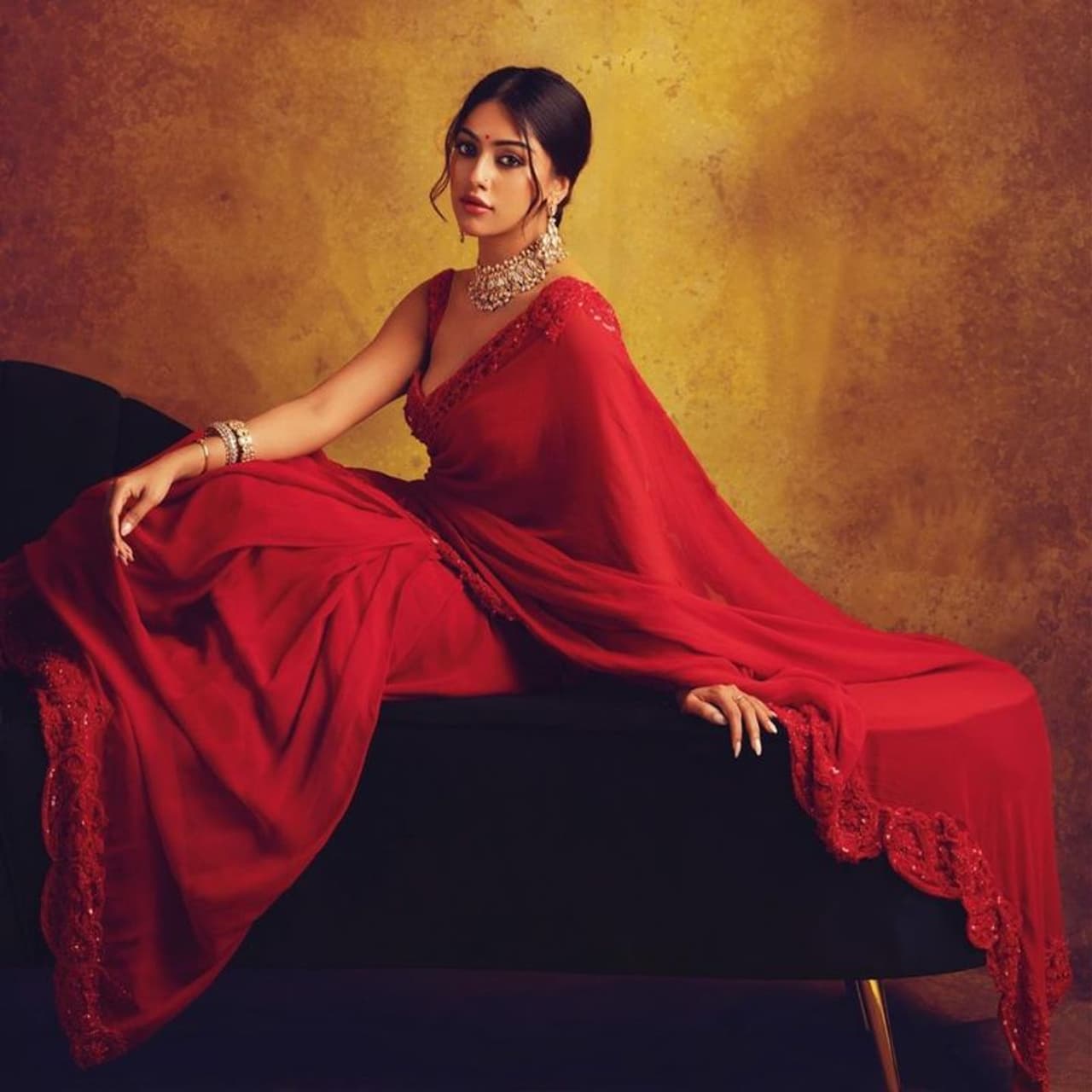 ఎర్ర చీర.. స్లీవ్ లెస్ బ్లౌజ్ లో ‘జపాన్’ బ్యూటీ మెరుపులు.. చీరకట్టుకే అందం తెచ్చిందిగా