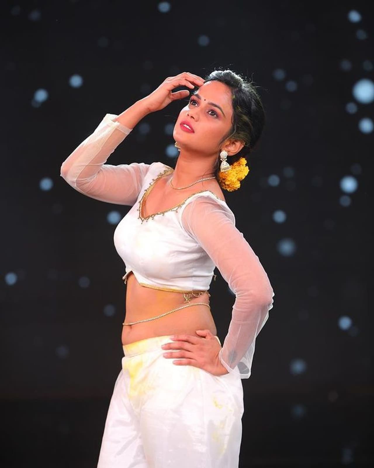 వైట్ లెహంగా, ఫుల్ స్లీవ్ బ్లౌజ్ లో మెరిసిపోయింది. అందమైన నడుము, నాభీని చూపిస్తూ కుర్రాళ్లను ఉక్కిరిబిక్కిరి చేసింది. మ్రుదువైన సొగసుతో యువతను చిత్తు చేసింది. మరోవైపు అరియానా మత్తు పోజులకు నెటిజన్లు కూడా మైమరిచిపోతున్నారు.