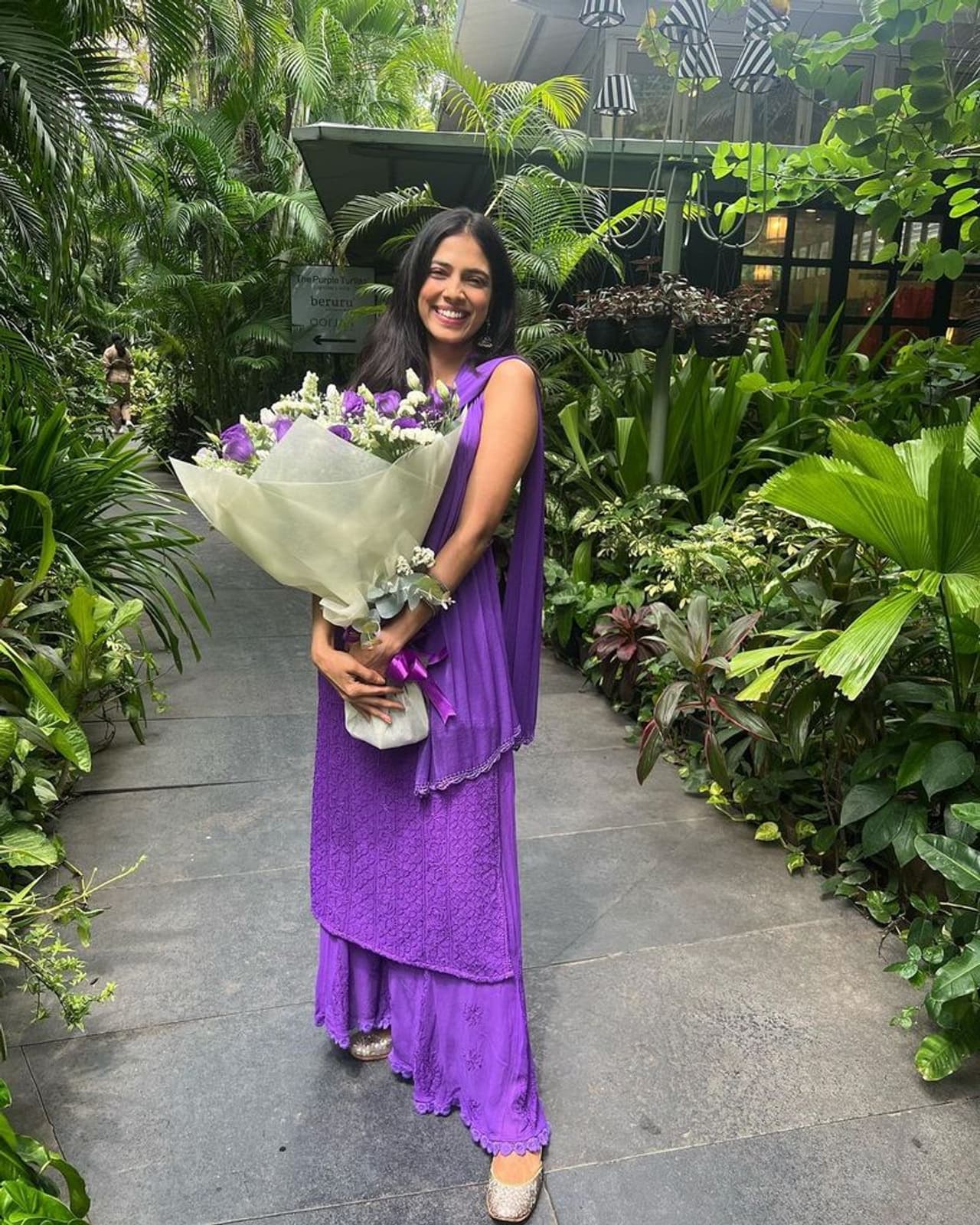 లేటెస్ట్ ఫొటోస్ లో మాళవికా పర్పుల్ కలర్ చుడీదార్ లో మెరిసింది. స్లీవ్ లెస్ టాప్ లో షోల్డర్ అందాలతో మైమరింపించింది. మరోవైపు ఫ్లవర్ షాపులో బొకె పట్టుకుని అందంగా ఫొటోలకు ఫోజులిచ్చింది. మరోవైపు సిట్టింగ్ పోజులతోనూ కట్టిపడేసింది. బ్యూటీపుల్ స్మైల్ తో కుర్ర గుండెల్ని కొల్లగొట్టింది.