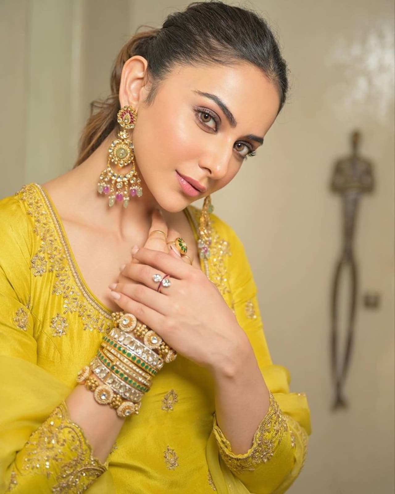 - ఎల్లో చుడీదార్ లో రకుల్ ప్రీత్ మెరుపులు.. ట్రెడిషనల్ వేర్ లోనూ ఢిల్లీ బ్యూటీ మత్తు ఫోజులు..
