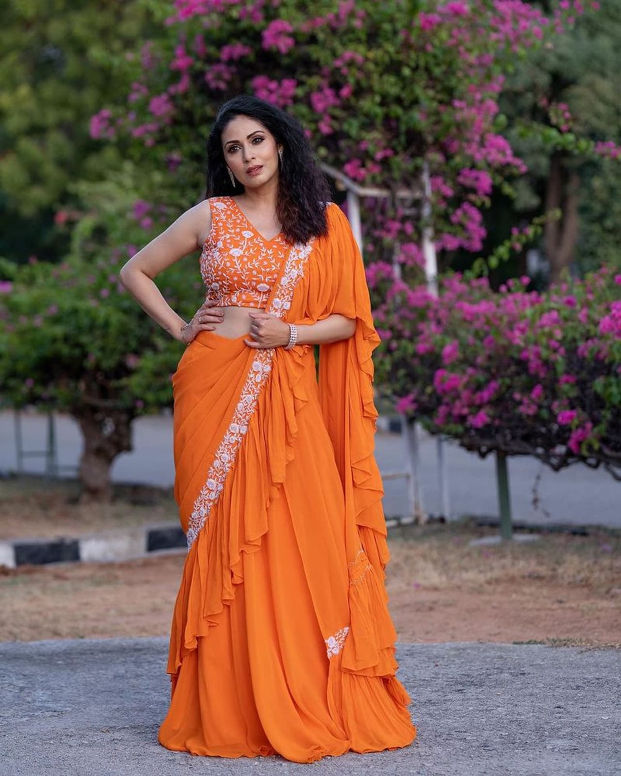 తాజాగా ఆ ఫొటోలను అభిమానులతో పంచుకుంది. లేటెస్ట్ పిక్స్ లో సదా వెలిగిపోతోంది. ఇటీవల ట్రెడిషనల్ లుక్ లోనే మెరుస్తున్న సదా..తాజాగా ఆరెంజ్ కలర్ హాఫ్ శారీ లాంటి డ్రెస్ లో కనువిందు చేసింది. అటు ట్రెండీ లుక్, ఇటు ట్రెడిషనల్ టచ్ తో ఆకట్టుకుంది.