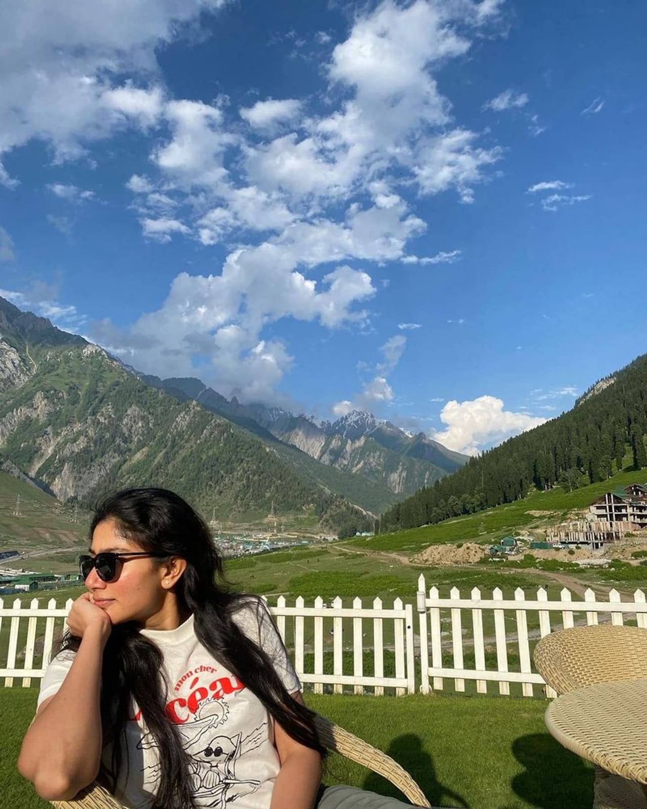 తాజాగా ఆ ఫొటోలను అభిమానులతో పంచుకుంది. ఆహాల్లాదకరమైన వాతావరణంలో సాయిపల్లవి రిలాక్స్ అవుతూ కనిపించింది. చుట్టూ ఎత్తైన కొండలు, గుట్టలు, అందమైన ప్రకృతిని చూస్తూ ఆస్వాదించింది. మరోవైపు బ్యూటీఫుల్ స్మైల్, క్యూట్ లుక్స్ తో ఆకట్టుకుంది.