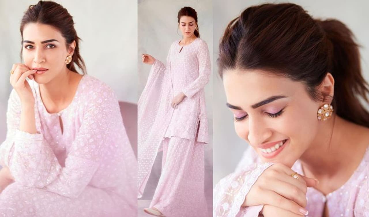 పాలరోజా డ్రెస్ లో చందమామలా మెరిసిన ఆదిపురుష్ హీరోయిన్... కృతి మెస్మరైజింగ్ లుక్ వైరల్!