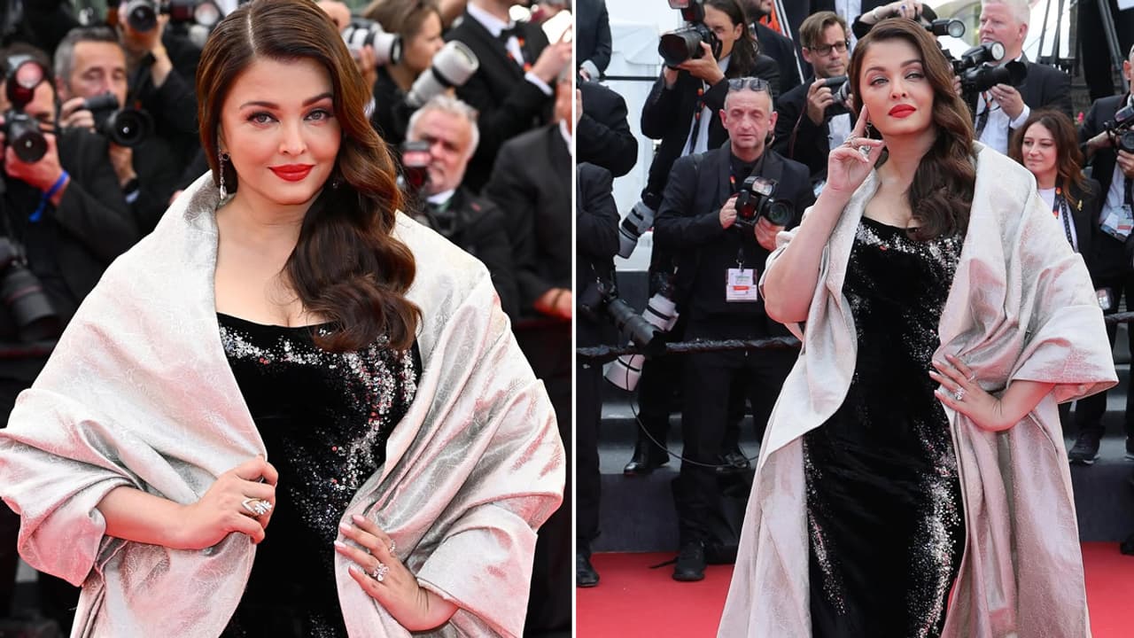 కేన్స్ రెడ్ కార్పెట్పై ఐశ్వర్య రాయ్ బచ్చన్ లుక్ చూసి పండగ చేసుకున్నారు ఫ్యాన్స్. . ఆమె బ్లాక్ కలర్ షిమ్మెరీ గౌనుతో వైట్ కలర్ ఓవర్ సైజ్ ష్రగ్ ధరించి కనిపించింది.