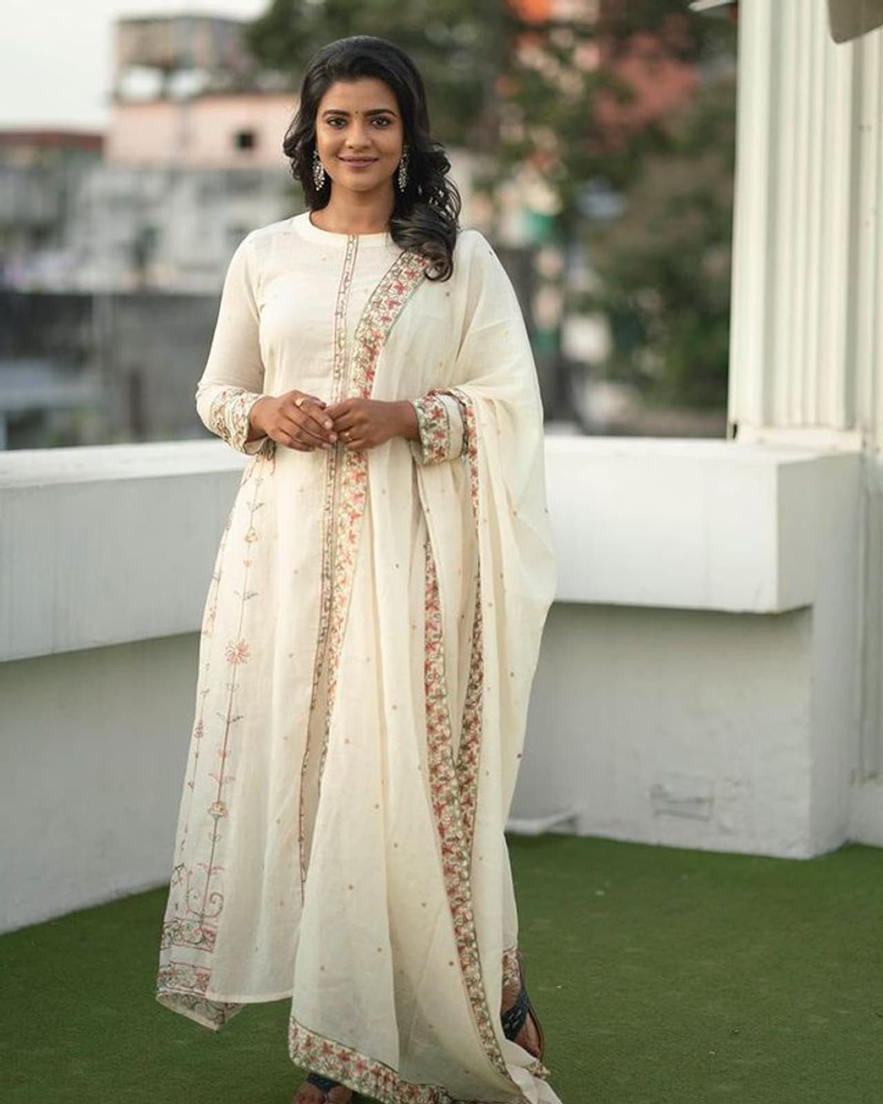 వైట్ చుడీదార్ లో డస్కీ బ్యూటీ ఐశ్వర్య రాజేశ్ మెరిసిపోతున్నారు. ఆకర్షించే రూపసౌందర్యం, మైమరిపించే చిరునవ్వుతో కుర్రాళ్లను ఉక్కిరిబిక్కిరి చేస్తోంది. సంప్రదాయ దుస్తుల్లో మెరుస్తూనే.. అదిరిపోయే పోజులతో ఫ్యాన్స్ తో పాటు నెటిజన్లను కట్టిపడేస్తోంది.
