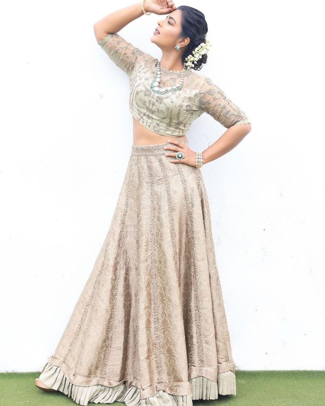 తాజాగా ఐశ్వర్య రాజేష్ తన డస్కీ అందంతో మెరుపులు మెరిపించింది. కళ్ళు చెదిరే లెహంగాలో ఐశ్వర్య రాజేష్ ఇస్తున్న ఫోజులు యమా స్టైలిష్ గా ఉన్నాయి. అంతే కాదు ఐశ్వర్య రాజేష్ అందం మొత్తం ఈ డ్రెస్ లోనే ఉన్నట్లు వెలిగిపోతోంది. చంద్రబింబం లాగా క్లోజప్ గా ఇస్తున్న ఫోజులు చూడముచ్చటగా ఉన్నాయి.