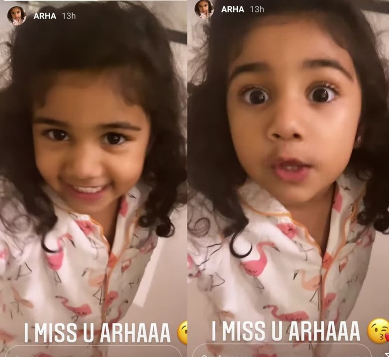 సదరు వీడియో ఇంస్టాగ్రామ్ స్టేటస్ లో పోస్ట్ చేసిన అల్లు అర్జున్ ... ఐ మిస్ యూత్ అర్హ అని కామెంట్ కూడా పెట్టారు. పిల్లల్ని ఎంతగానో ప్రేమించే అల్లు అర్జున్ సమయం దొరికితే వారితోనే గడుపుతారు.