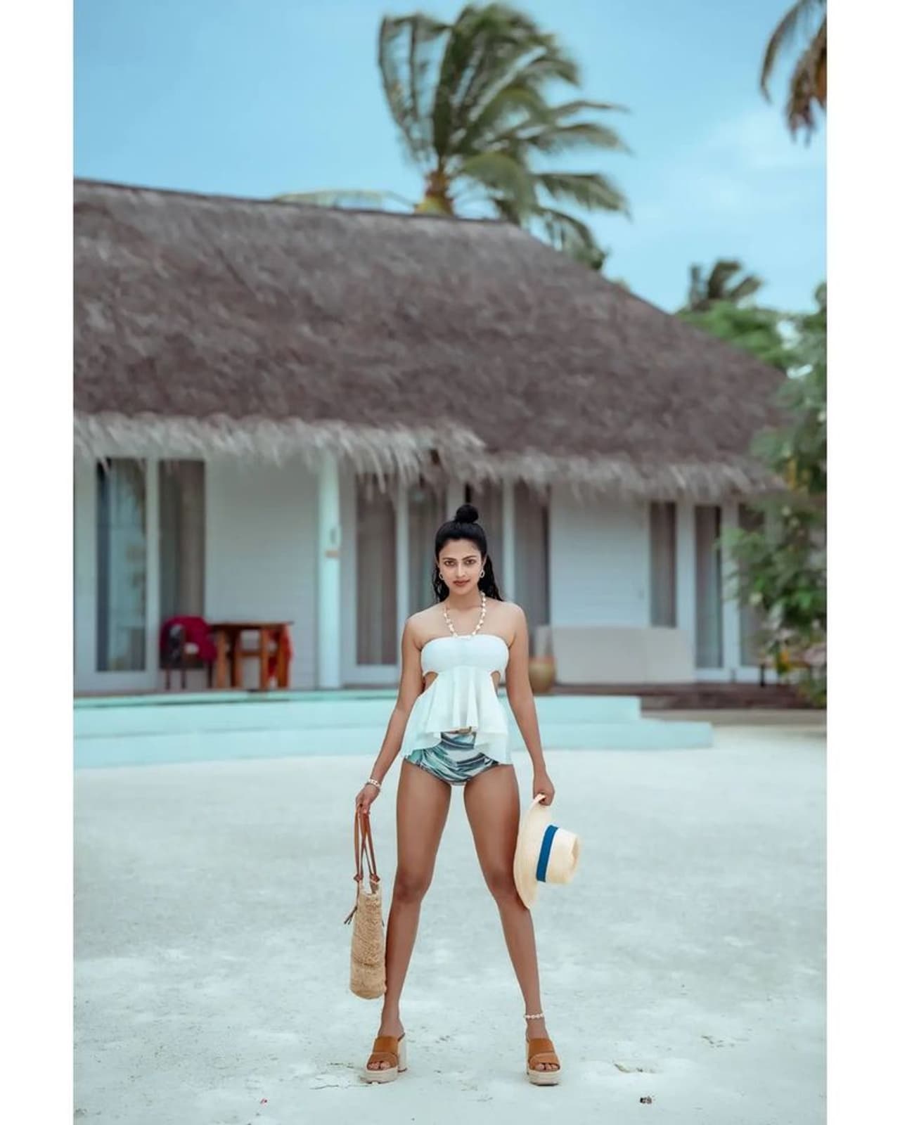 బీచ్ వేర్ ధరించిన అమలా పాల్, ఆపైన వైట్ ట్రెండీ టాప్ వేసుకొని అందాల విందు చేసింది. లేటెస్ట్ ఫొటోల్లో సెక్సీ లుక్ ను సొంతం చేసుకుంది.. రోజురోజుకు గ్లామర్ డోస్ పెంచుతున్న అందాల సుందరి తాజాగా మరింతగా రెచ్చిపోయింది.