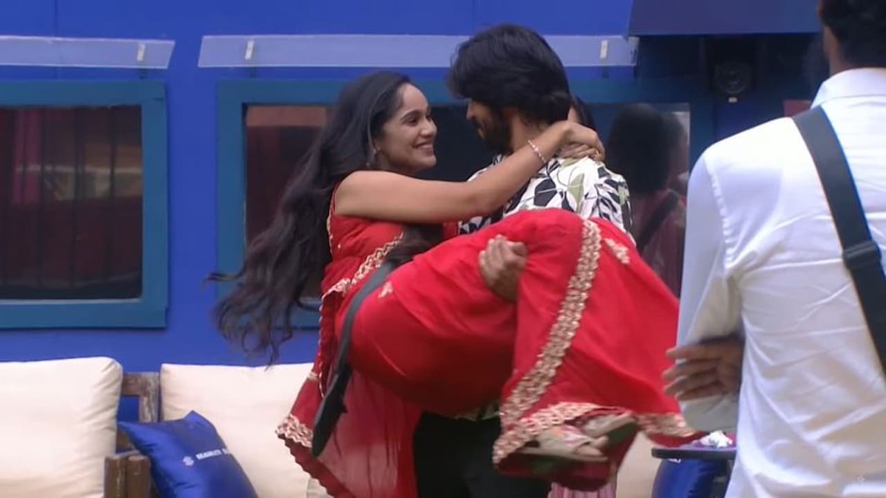 ఆ రింగ్ వాళ్ళిద్దరి ఎంగేజ్ మెంట్ రింగ్ అట. బిగ్ బాస్ కి వచ్చేటప్పుడు ఇంట్లోనే పెట్టి వచ్చాడట. దీనితో తేజస్విని ఆ రింగ్ ని తన భర్తకి సినిమాటిక్ స్టైల్ లో తొడిగింది. ఆ తర్వాత ఇంటి సభ్యుల ముందు అమర్ కేక్ కట్ చేసి బర్త్ డే సెలెబ్రేట్ చేసుకున్నాడు. భార్యకి కేక్ తినిపించాడు. తేజస్విని అమర్ కి రొమాంటిక్ గా కిస్ కూడా పెట్టింది. ఈ ముద్దు చెరిగిపోకూడదు అని తెలిపింది. అమర్.. తన భార్యని ఎత్తుకుని రొమాంటిక్ గా డ్యాన్స్ కూడా చేశాడు. ఆ దృశ్యాలు ఎంతో అందంగా ఉన్నాయి.