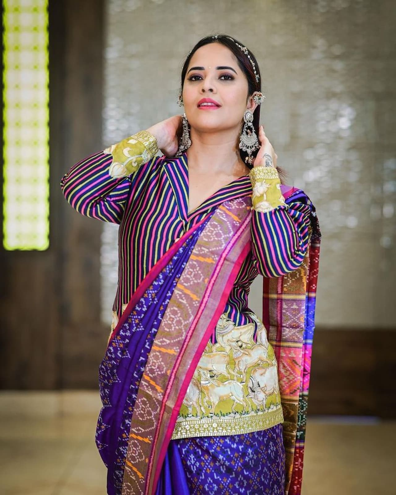 ఇలాంటి బ్లౌజ్ తో కట్టి పడేయాలంటే అనసూయ తర్వాతే.. మహారాణిలా హొయలు పోతూ ఫోజులు