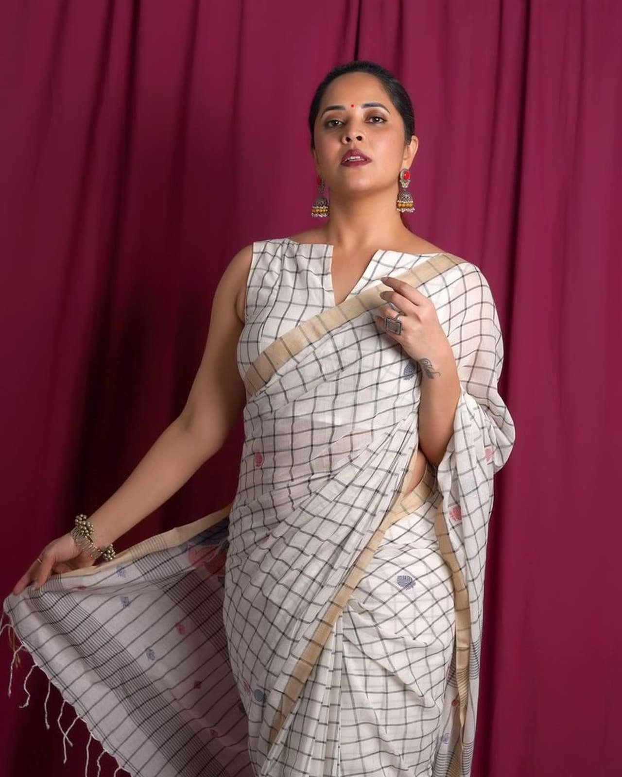 - వెరైటీ శారీ, వెరైటీ బ్లౌజ్ లో అనసూయ కిరాక్ గ్లామర్.. ఎప్పటిలాగే సొగసు మాయలో ముంచేస్తున్న బోల్డ్ యాంకర్