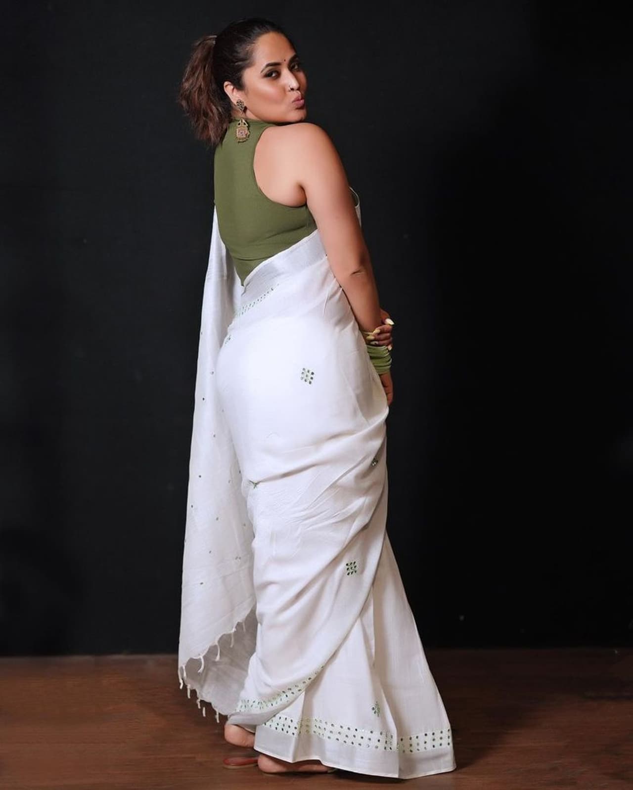 అనసూయ అందంగా కనిపిస్తే ఆ ఫొటోస్ సోషల్ మీడియాలో ఎంతగా వైరల్ అవుతాయో ప్రత్యేకంగా చెప్పనవసరం లేదు. తాను నటించిన విమానం మూవీ ప్రమోషన్స్ లో భాగంగా అనసూయ వైట్ శారీ, స్లీవ్ లెస్ బ్లౌజ్ ధరించిన పిక్స్ పోస్ట్ చేసింది.