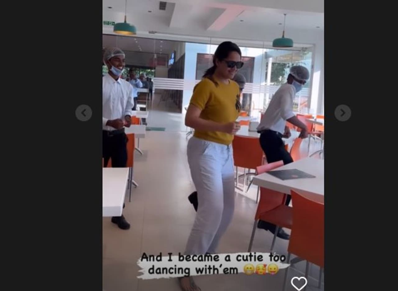 అందులో భాగంగా ఓ హోటల్లో చిందులేసింది. హోటల్లోకి వెయిటర్లతో కలిసి ఆమె మాస్ చెప్పులేసింది. `రా రా రక్కమ్మ... ఎక్క సక్క ఎక్కా సక్కా.. ` అనే పాటకు డాన్సు చేసింది. వెయిటర్లతో కలిసి ఈ బ్యూటీ చేసిన డాన్సు దుమ్ము దుమారం రేపుతుంది. ప్రస్తుతం ఈ వీడియో ఇంటర్నెట్లో వైరల్ అవుతుంది.
