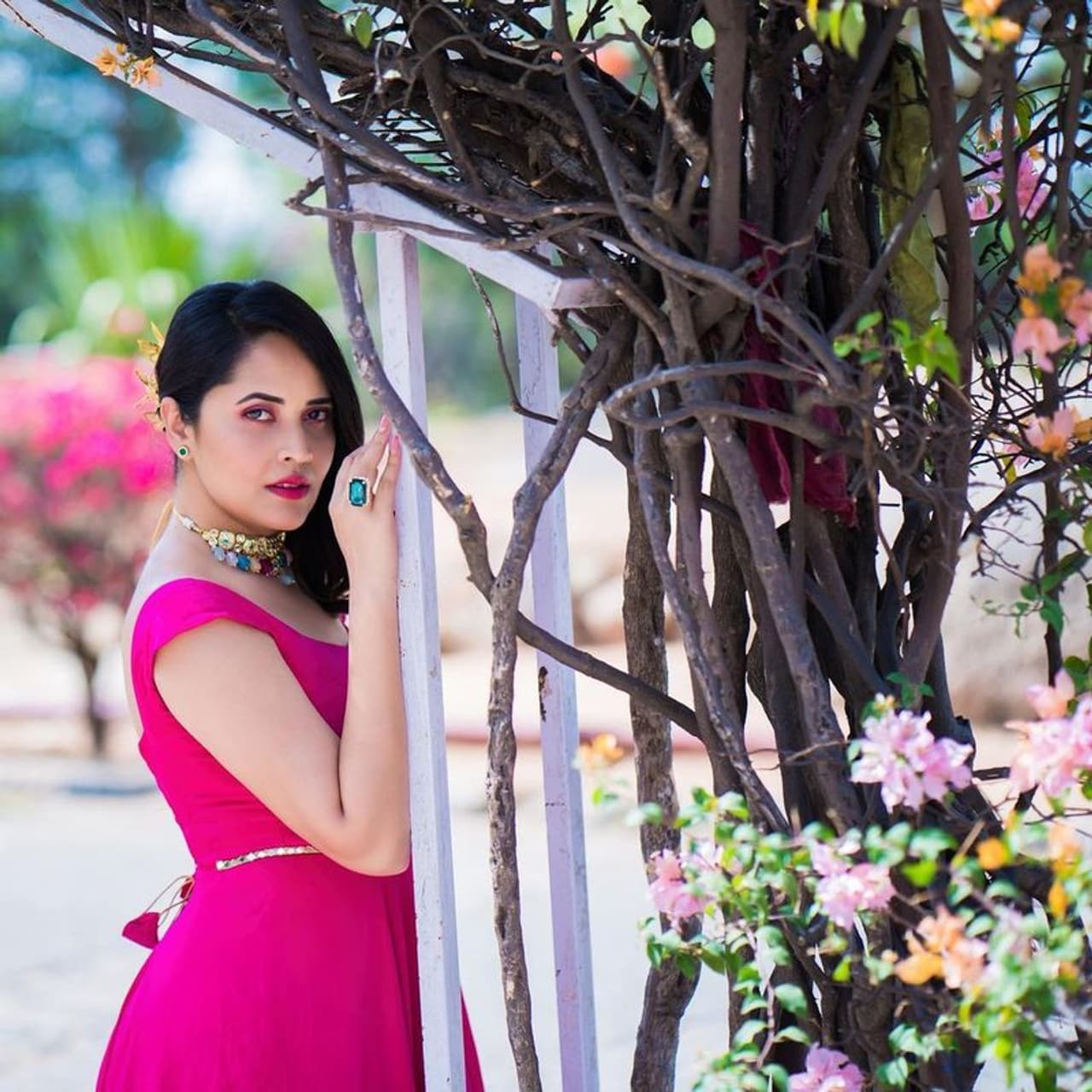కంప్లీట్ పింక్ ఉండేలా అనసూయ పింక్ డ్రెస్.. పింక్ లిప్స్ తో మెస్మరైజ్ చేస్తోంది. అనసూయ ఈ ఫొటోస్ లో కుర్ర భామలా అందంతో వెలిగిపోతోంది. ఈ ఫోజులకు అనసూయ తనదైన శైలిలో హాట్ టచ్ ఇస్తూ యువతని ఊరిస్తోంది. బ్యాక్ సైడ్ కిటికీలని తలపించేలా ఉన్న డిజైన్ అంతే స్టన్నింగ్ హాట్ అనే చెప్పాలి.