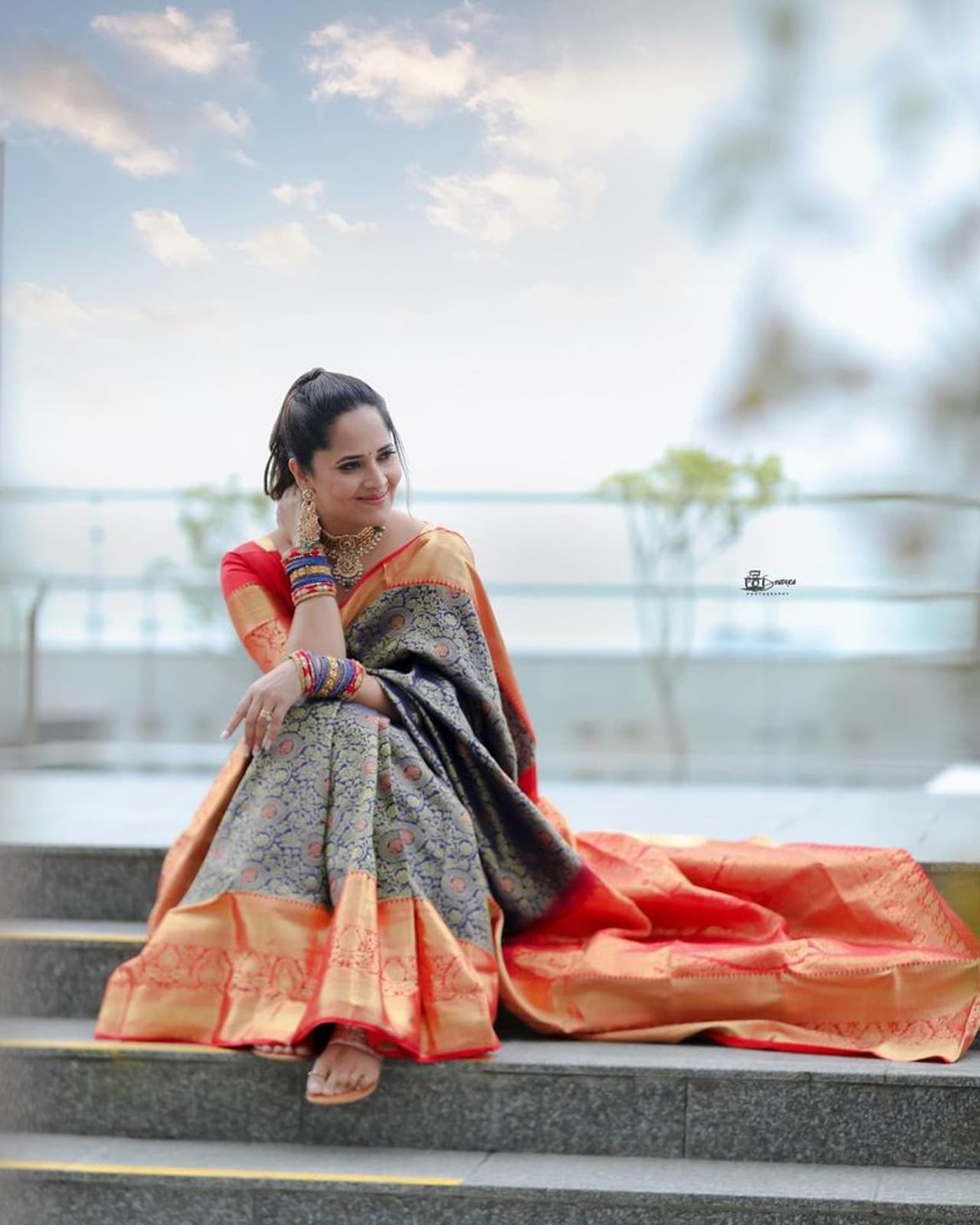 చీరకట్టులో అనసూయ గతంలో ఎన్నడూ లేనంత హాట్ గా మెరిసిపోతోంది. అనసూయకి ఈ శారీ పర్ఫెక్ట్ గా సెట్ అయింది అనే చెప్పొచ్చు. అనసూయ వివిధ భంగిమల్లో ఇస్తున్న ఫోజులు ఆకట్టుకుంటున్నాయి.