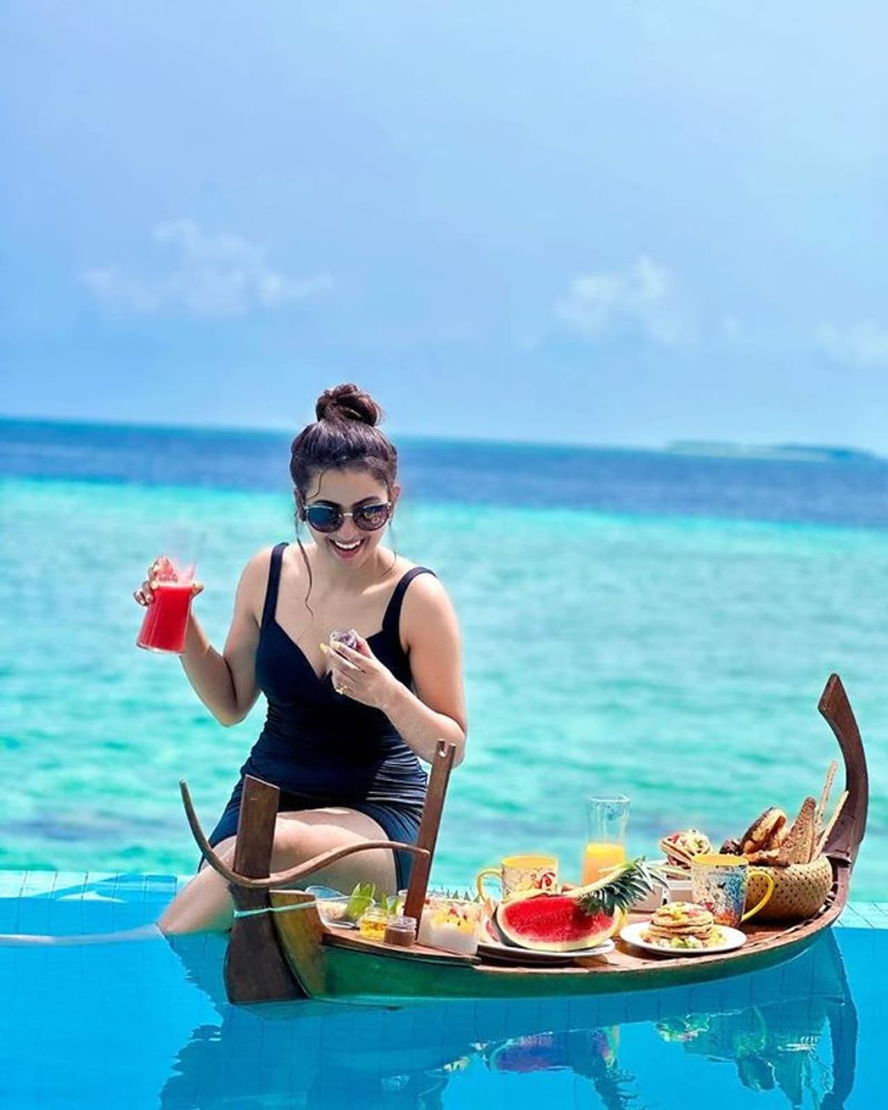 అదేవిధంగా అక్కడ ఈ బ్యూటీ చేస్తున్న అందాల రచ్చను అభిమానులతోనూ షేర్ చేసుకుంటోంది. తాజాగా యంగ్ యాంకర్ షేర్ చేసిన ఫొటోలు స్టన్నింగ్ ఉన్నాయి. ఉదయమే స్విమ్మింగ్ పూల్ లో ఫ్లోటింగ్ బ్రేక్ ఫాస్ట్ చేస్తూ కనిపించింది. అన్ని రకాల టేస్టీ ఫుడ్ రుచి చూసింది.