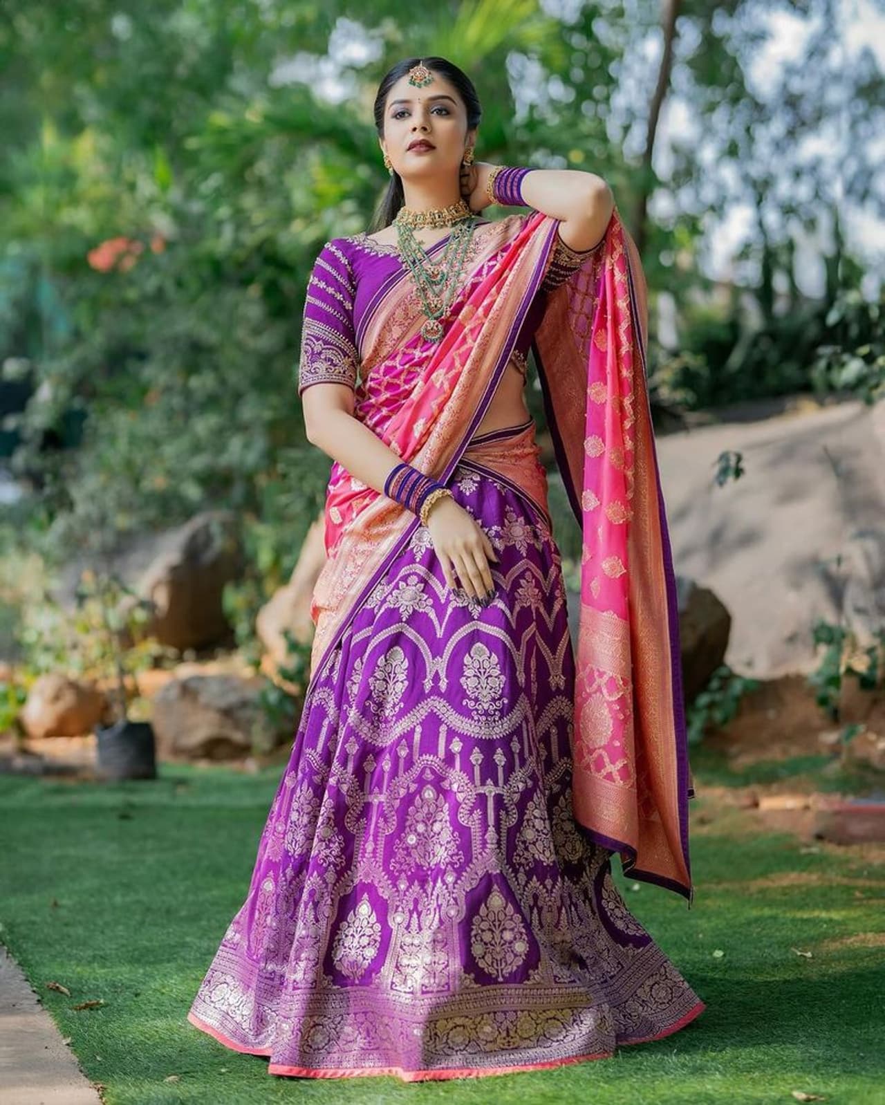 పింక్ డిజైన్డ్ శారీలో శ్రీముఖి బ్యూటీఫుల్ గా మెరిసింది. మ్యాచింగ్ బ్లౌజ్, ఆకర్షణీయమైన నగలు ధరించి మరింత అందాన్ని సొంతం చేసుకుంది. పద్ధతిగా మెరిసి మైమరిపించింది.