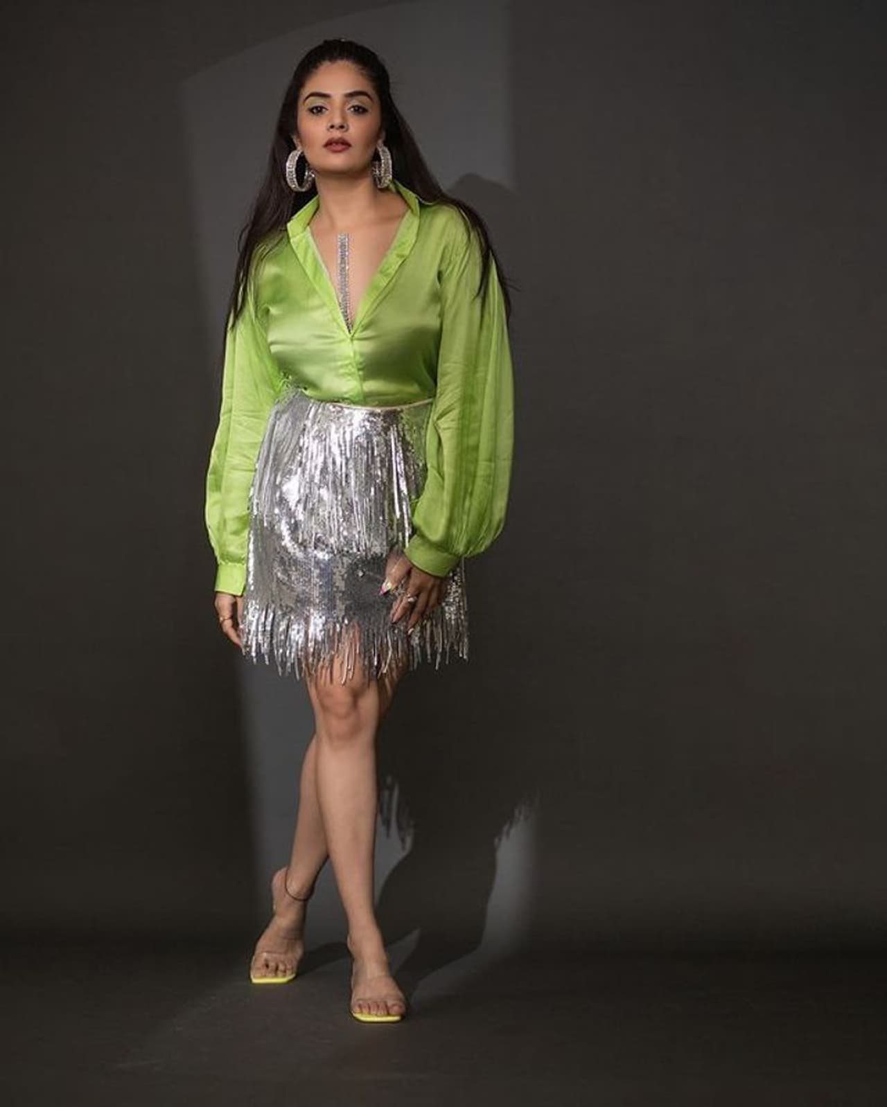 గ్రీన్ షర్ట్, సిల్వర్ స్కర్ట్ ధరించి అందాల ప్రదర్శనతో ఇంటర్నెట్ ను షేక్ చేసింది. థండర్ థైస్ చూపిస్తూ కుర్ర గుండెల్లో గంటలు మోగించింది. శ్రీముఖి అందాలకు రచ్చకు యువత చిత్తైపోతోంది. కవ్వింపు పోజులతో రెచ్చగొట్టేలా ఫొటోషూట్ చేసింది.