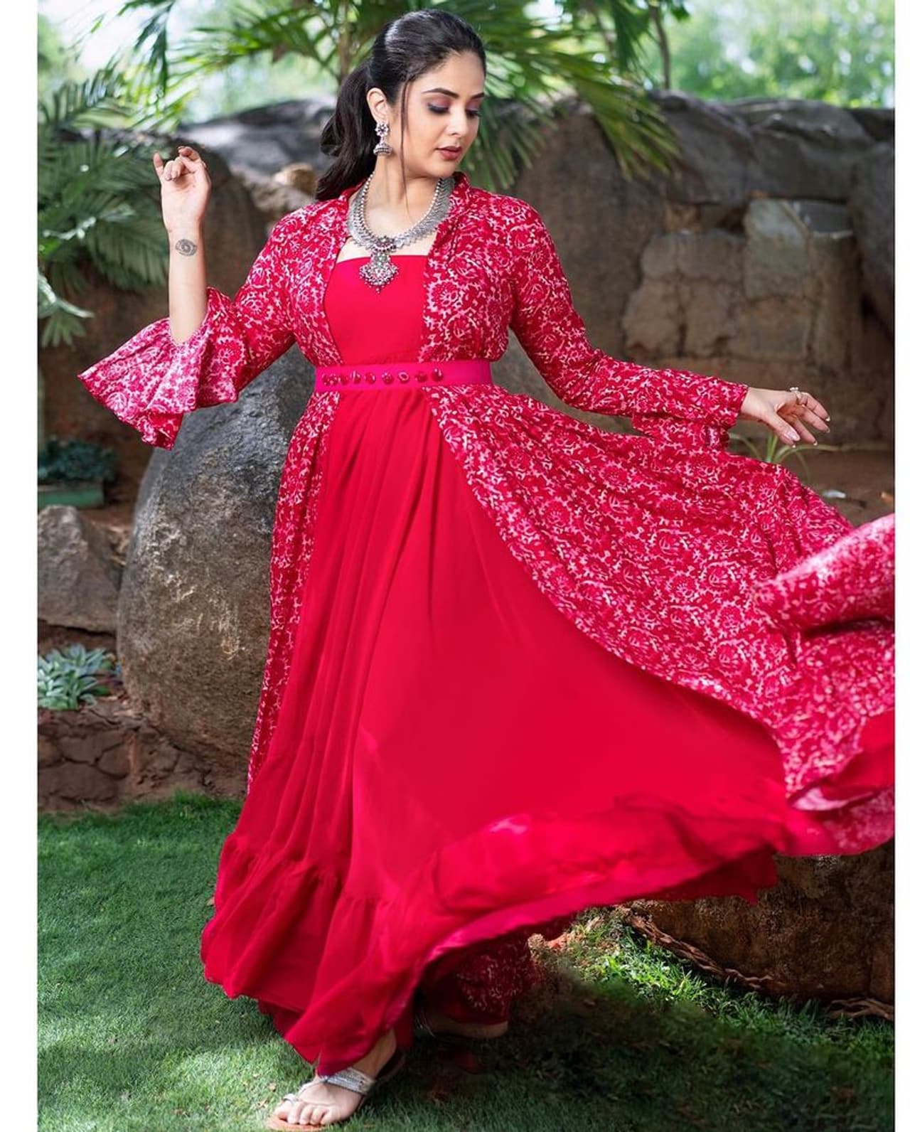 రెడ్ గౌన్ లాంటి డ్రెస్ లో శ్రీముఖి అదిరిపోయే లుక్ ను సొంతం చేసుకుంది. ట్రెడిషనల్ వేర్ లో బుల్లితెర రాములమ్మ మరింత అందాన్ని సొంతం చేసుకుంది. బ్యూటీఫుల్ లుక్ తో పాటు కిర్రాక్ ఫోజులతో అదరగొట్టింది.