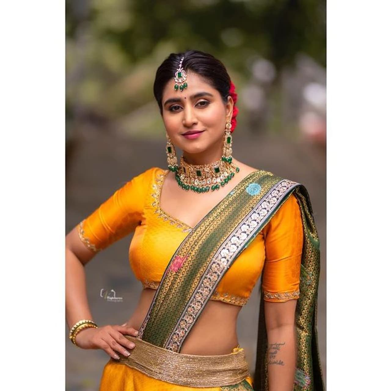 బుల్లితెర అందాల యాంకర్ వర్షణి (Varshini) సంప్రదాయ దుస్తుల్లో మెరిసిపోతోంది. మోడ్రన్ లుక్ లోనే కాకుండా.. ట్రెడిషనల్ లుక్ లోనూ ఆకట్టుకుంటోంది. తాజాగా ఆమె పంచుకున్న ఫొటోలు ఆకర్షణీయంగా ఉన్నాయి.