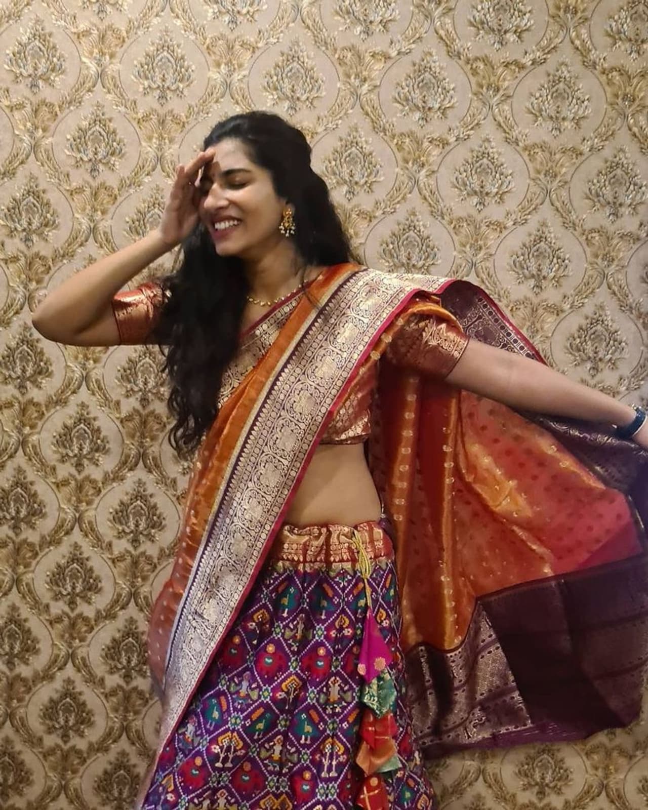 బుల్లితెర బ్యూటీ విష్ణు ప్రియ లంగా, ఓణిలో ముస్తాబై పండగ శోభతో మెరిసిపోయింది. ఉగాది పండగ వేళ పట్టు బట్టలు ధరించి పద్దతిగా తయారైంది. అయితే సాంప్రదాయ బట్టలలో కూడా నడుము చూపిస్తూ, సెగలు రేపింది.