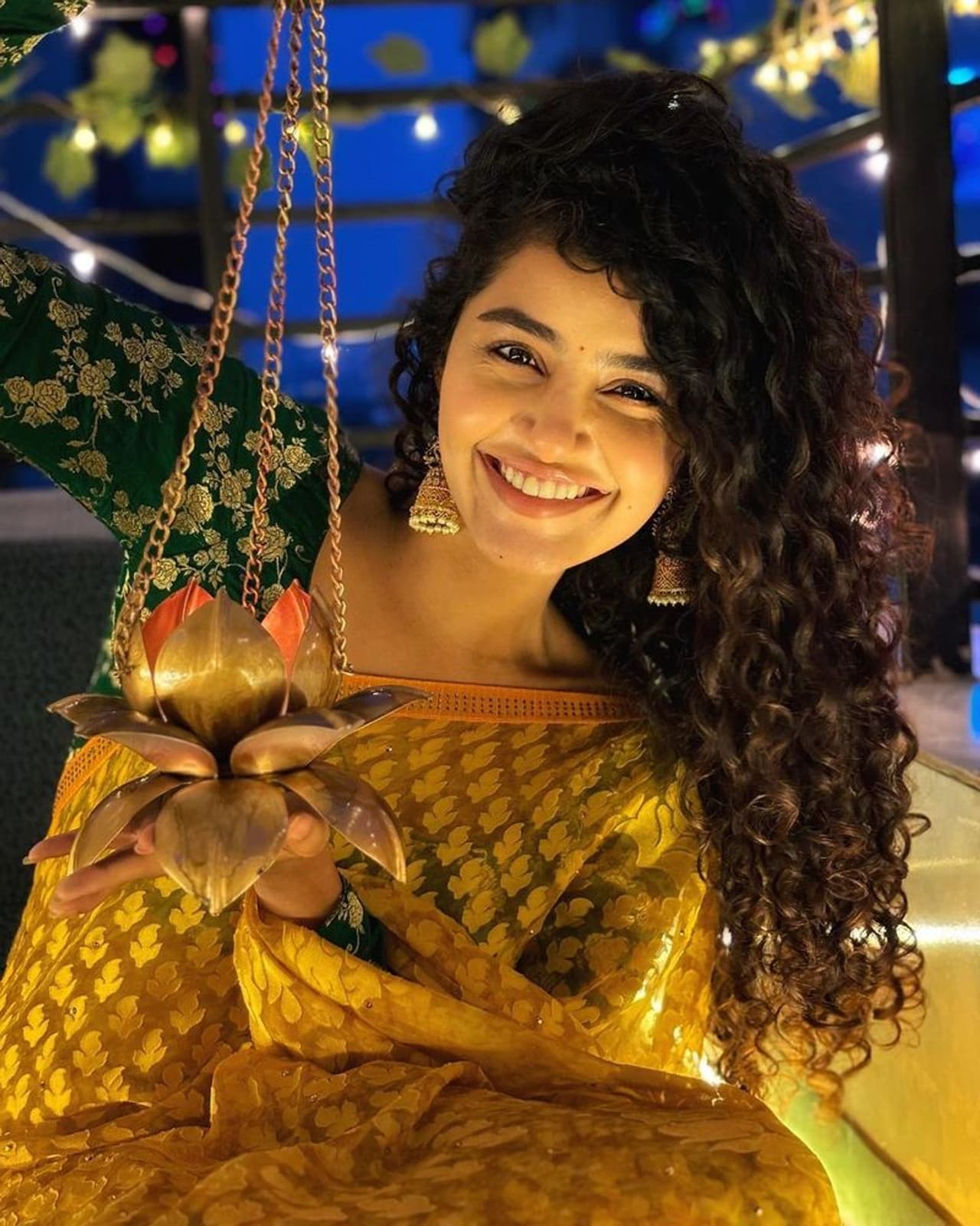 మలయాళ ముద్దుగుమ్మ అనుపమా పరమేశ్వరన్ పండగపూట సంప్రదాయ దుస్తుల్లో మెరిసింది. దీపాలను వెలిగించి వేడుక జరుపుకుంది. తాజాగా పంచుకున్న ఫొటోస్ ఆకట్టుకుంటున్నాయి.