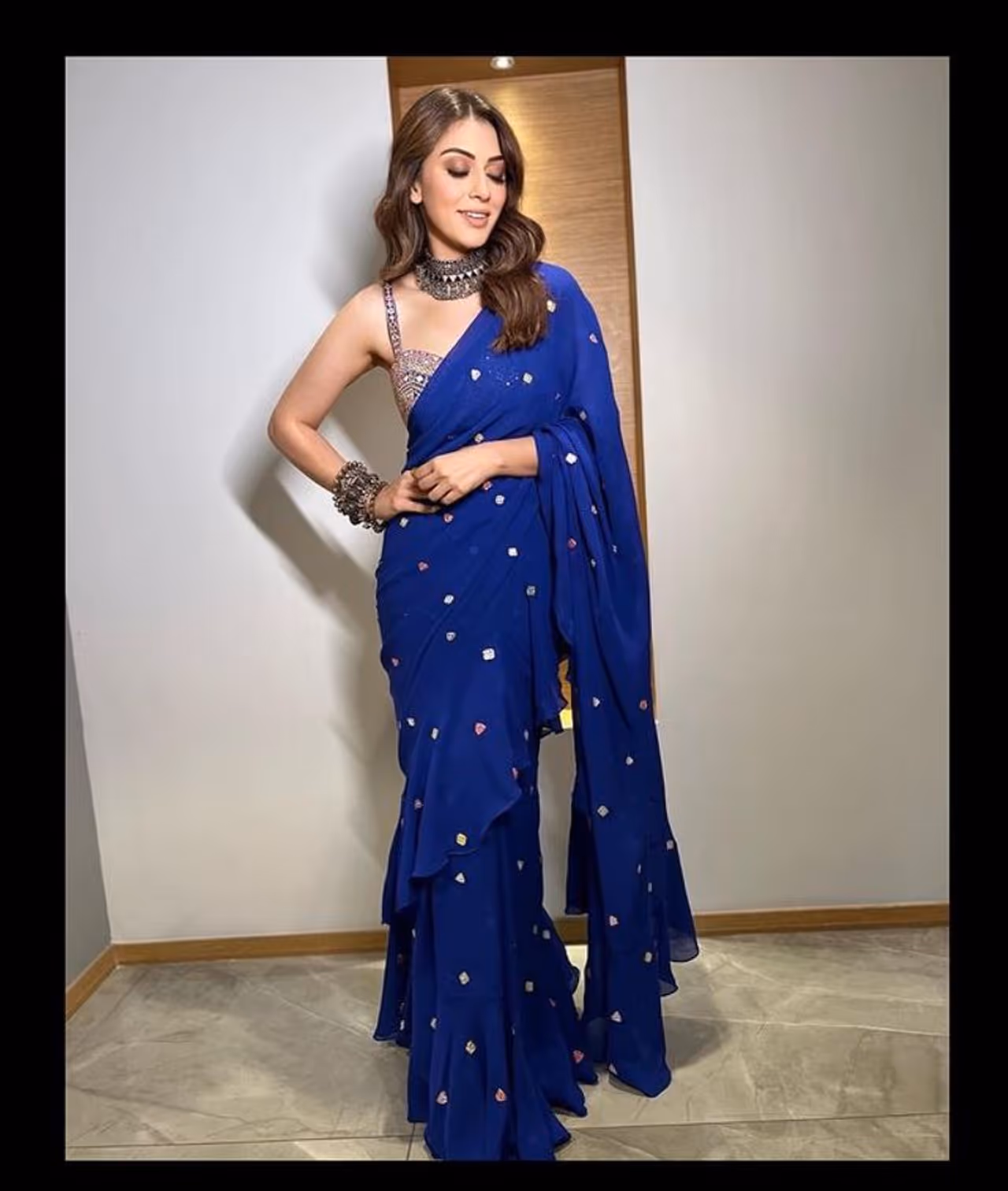బ్లూ శారీలో యాపిల్ బ్యూటీ స్టన్నింగ్ స్టిల్స్.. చీరకట్టులో హన్సిక పరువాల ప్రదర్శన అదిరిపోయిందిగా.!