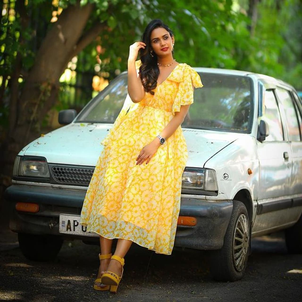 - నడుము వంచుతూ మతి చెడగొడుతున్న ‘బిగ్ బాస్’ బ్యూటీ.. ఎల్లో గౌన్ లో అరియానా గ్లోరీ టెంప్టింగ్ పోజులు!