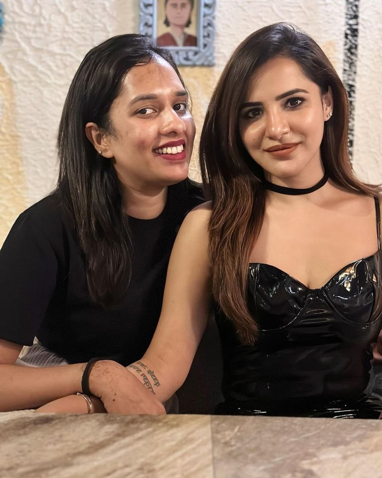 తనకిష్టమైన, బెస్ట్ ఫ్రెండ్ అయిన హరిన్య రెడ్డితో కలిసి సరదాగా దిగిన ఫోటోలు షేర్ చేసిందీ సెక్సీ బ్యూటీ. రెస్టారెంట్లో ఈ ఇద్దరు అందరు చూస్తుండగానే ఇలా పబ్లిక్లో ముద్దులు పెట్టుకోవడం, చిలిపి పనులు చేయడం ఆశ్చర్యపరిచింది.