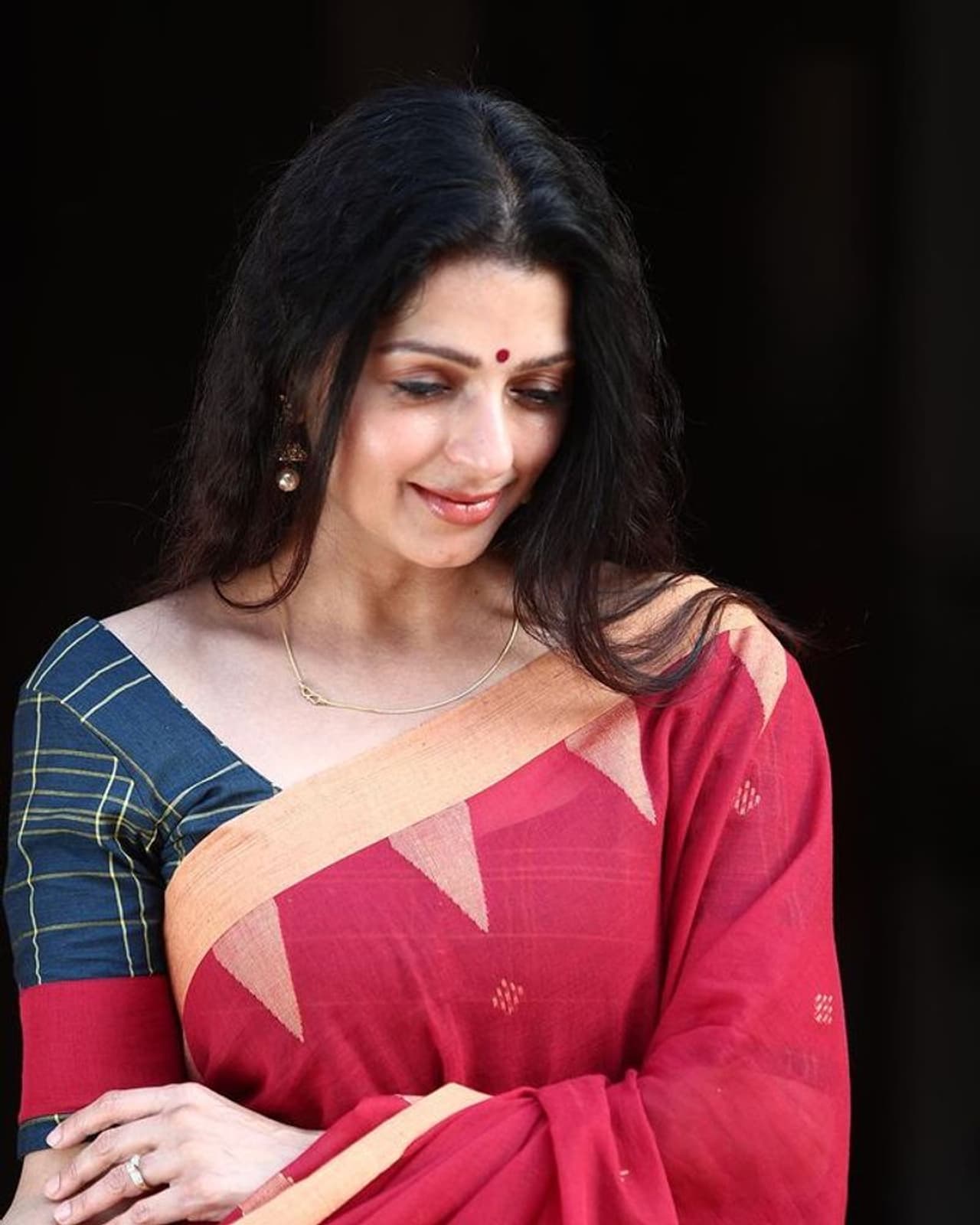 తాజాగా భూమిక తన ఇన్స్టాగ్రామ్ లో రెడ్ శారీలో ఉన్న ఫొటోస్ షేర్ చేసింది. ఈ ఫొటోస్ లో భూమిక చూపుతిప్పుకోలేని విధంగా అందంతో మెస్మరైజ్ చేస్తోంది. భూమికని కుర్రాళ్లు ఇలా చూస్తే ఖుషి చిత్రంలోని 'అమ్మాయే సన్నగా అరనవ్వే నవ్వగా' పాటేసుకోవడం ఖాయం.